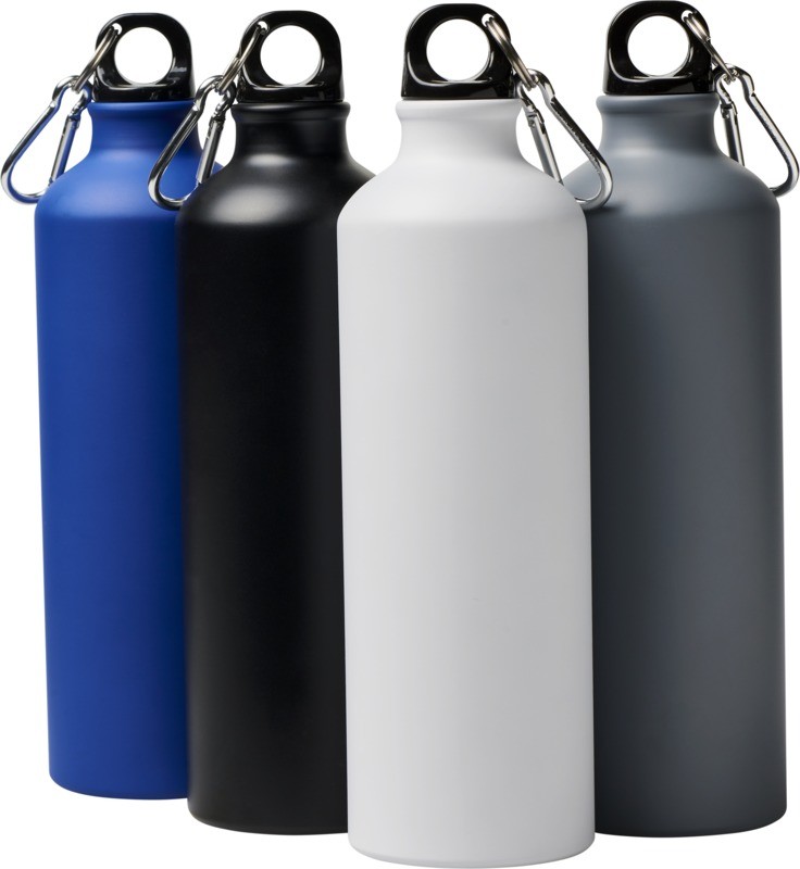 Bouteille de sport à simple paroi avec couvercle à visser. Look mat tendance. Le mousqueton ne convient pas pour l’escalade. Capacité de 770 ml. Aluminium. Fabriqué en Chine.