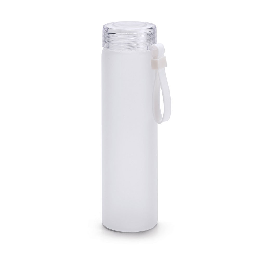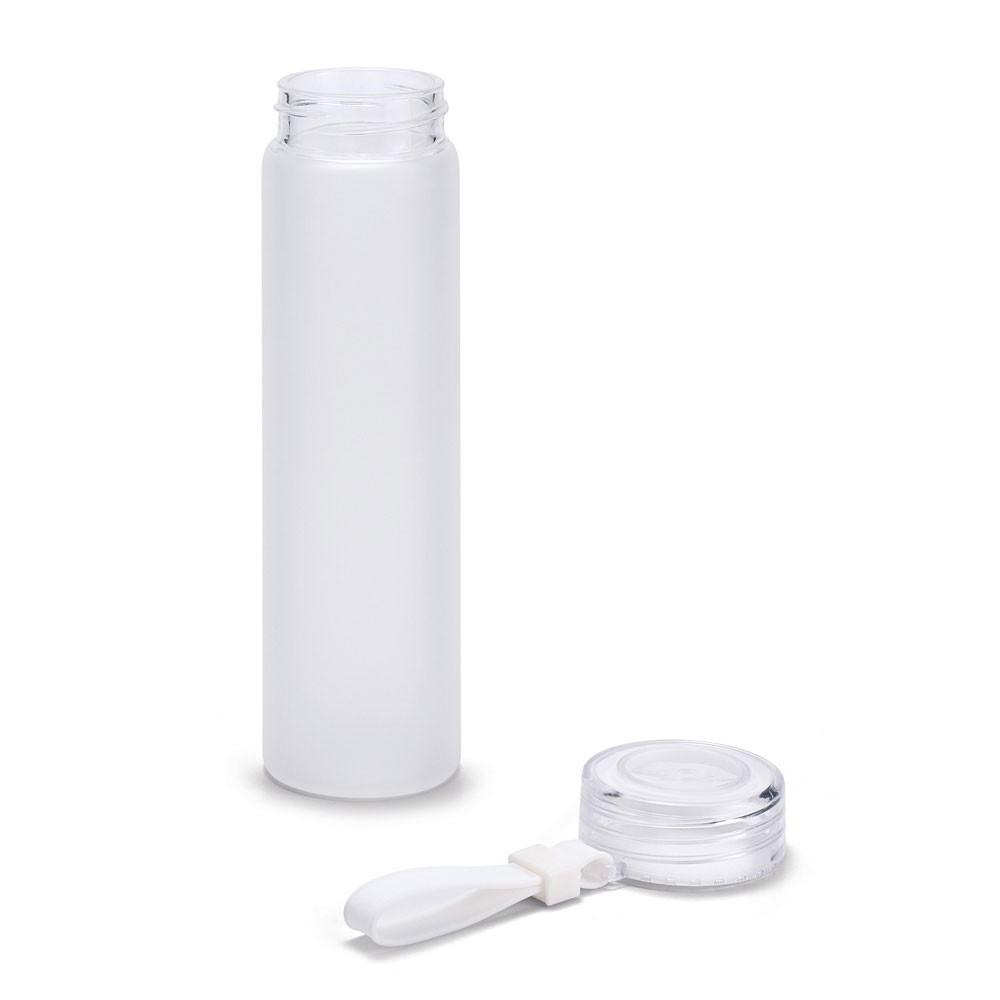 Gourde en verre borosilicaté avec bouchon à vis en AS. Avec une finition dégradée mate et une poignée en silicone sur le couvercle. Capacité jusqu’à 470 mL. Fourni dans une boite cadeau. Fabriqué en Chine.