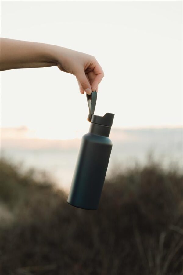 Bouteille d’eau pratique et élégante avec une double paroi résistante. Isolation sous vide pour garder les boissons chaudes ou froides jusqu’à 6 heures. Dégustez votre boisson fraîche préférée lorsque vous êtes en déplacement ou emportez une tasse de thé ou de café bien chaud lors de vos trajets matinaux. Bouton poussoir.