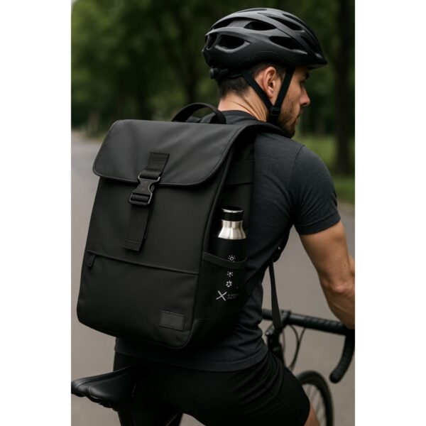 Bouteille isotherme de 500 ml en acier inoxydable à triple paroi avec finition en rubber. Grâce à sa construction en acier inoxydable à triple paroi, la bouteille peut conserver les boissons chaudes pendant 12 heures et les boissons froides pendant plus de 24 heures. Sa paille rétractable facilite la consommation et son anneau retractable permet une utilisation nomade. Une personnalisation par gravure laser avec effet miroir + frais techniques et coffret cadeau cylindrique en carton inclus.