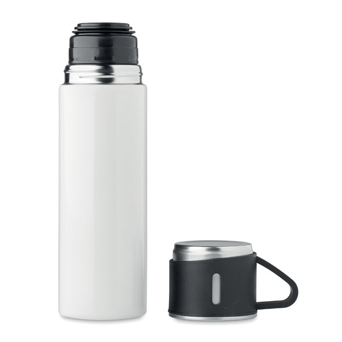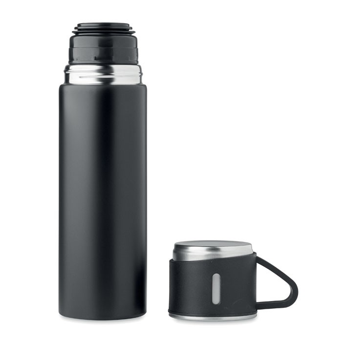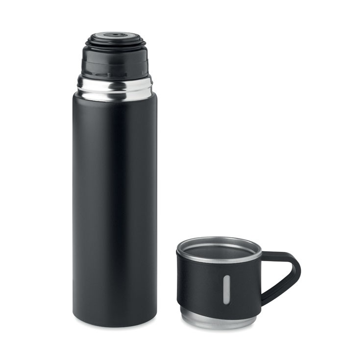 Gourde en acier inoxydable à double paroi, à vide isolant, avec bouchon gobelet étanche. Capacité : gourde 420 ml, gobelet 150 ml.