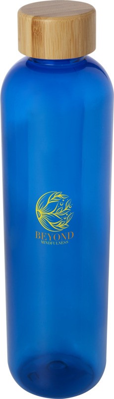 Bouteille d’eau réutilisable en plastique recyclé, avec un élégant couvercle en bambou. La bouteille à simple paroi est exempte de bisphénol A, testée et approuvée par la législation allemande sur la sécurité alimentaire (LFGB). Testée et approuvée pour la teneur en phtalates conformément à la réglementation REACH. Le bambou provient de sources durables, respectueuses de l’environnement et socialement responsables. Capacité de 950 ml. Lavage à la main recommandé. Livrée dans un coffret cadeau en carton recyclé. Plastique recyclé PET, Bambou, Plastique PP recyclé. Fabriqué en Chine.