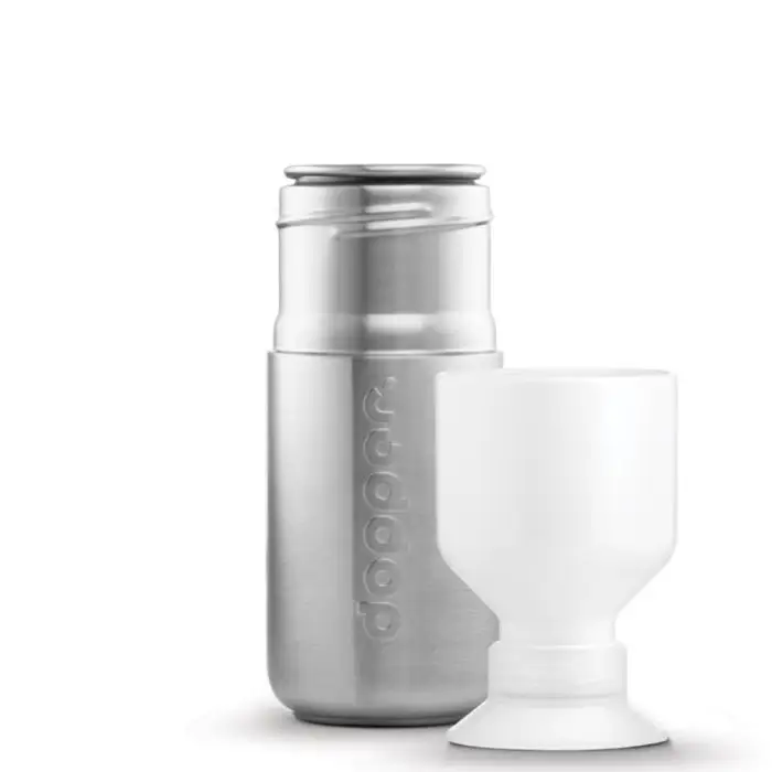 Prenez une position ferme pour des eaux cristallines avec la Dopper Steel 350 ml. Ce chevalier dans son armure brillante est cool et robuste et convient parfaitement dans un sac de sport. Un indispensable pour tous ceux ou toutes celles qui aiment le sport et le grand air ! La Dopper Steel d’une contenance de 350 ml est composée de trois parties aisément nettoyables. Elle résiste au lave-vaisselle jusqu’à 65°C / 149°F. Elle est destinée à ne recevoir que de l’eau du robinet. La Dopper Steel est fabriquée de manière responsable en Chine (BSCI Code of Conduct) et certifiée Cradle to Cradle™ niveau Bronze. Tous les matériaux sont garantis sans BPA et sans phtalate. Mise en garde : ceci n’est pas une bouteille isotherme. Conditionnement par multiple de 12 à respecter.