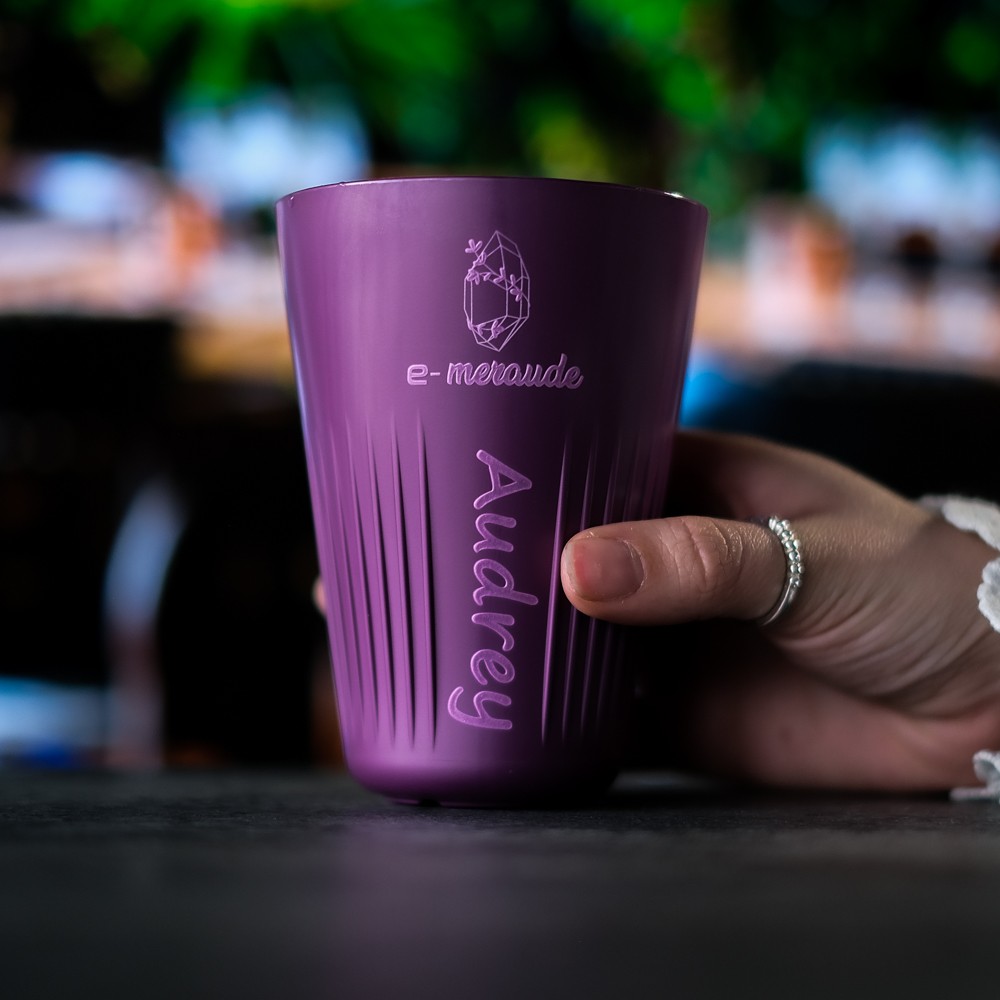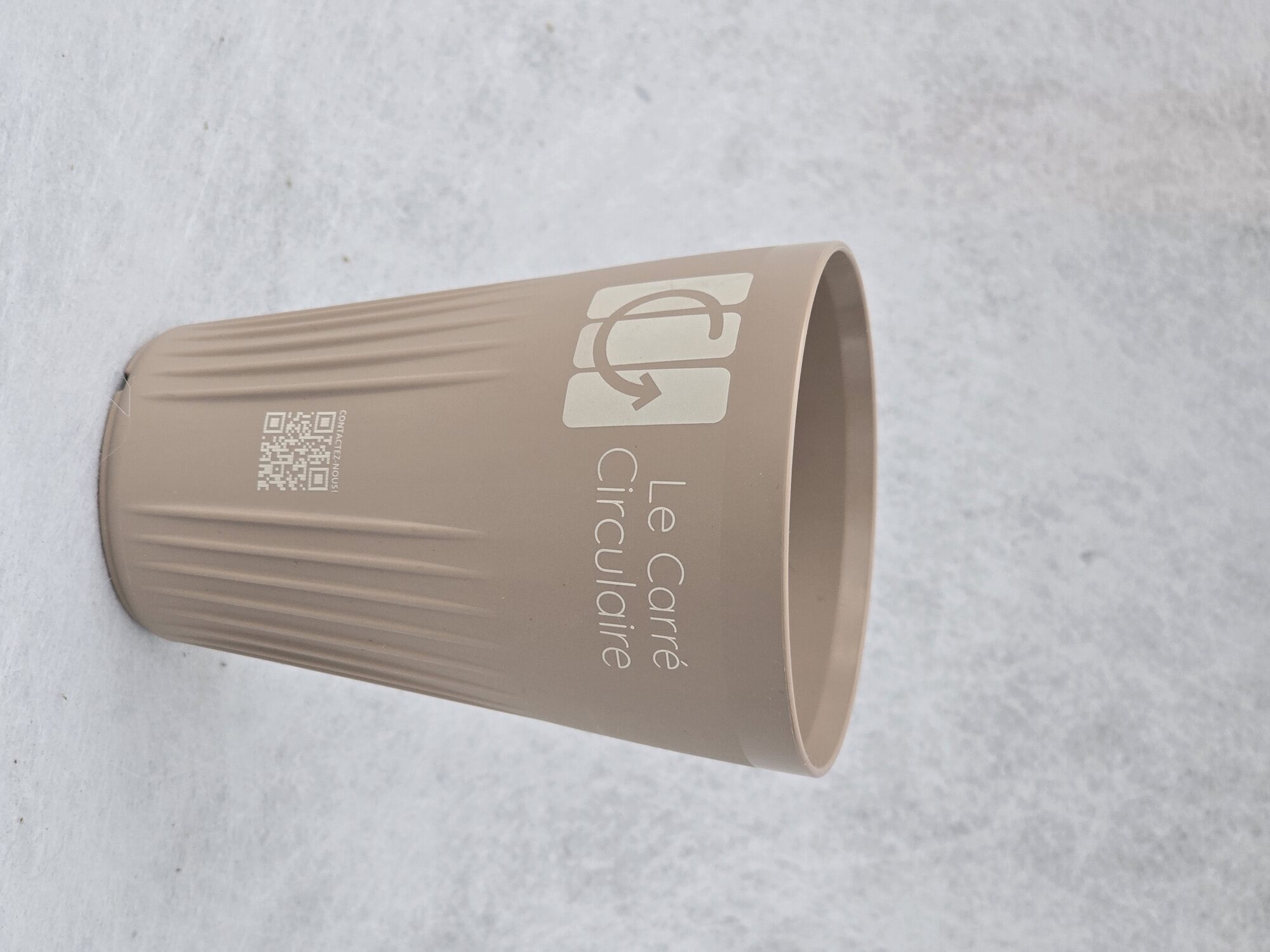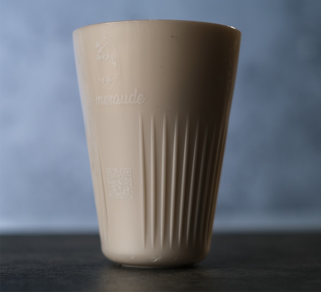 Le verre de Jojo est fabriqué dans une résine bio-sourcée qui se désagrège en quelques mois sans laisser de particules micro-plastiques si l’objet se retrouve accidentellement dans un milieu naturel ! A base de bois et d’argile, pour boissons chaudes & froides, passage au micro-ondes (5 mn à 1000W validé par la norme EN 128752), passage également au lave-vaisselle (norme EN128751 & EN 128752). Contact alimentaire garanti. Conditionnement par carton de 100 pièces obligatoire . Emissions EqCO² 29 fois inférieures aux gobelets jetables et 60% inférieures aux contenants en verre. Possibilité de couvercle silicone ou en bois en option. Un marquage en gravure 1 position et frais techniques inclus.