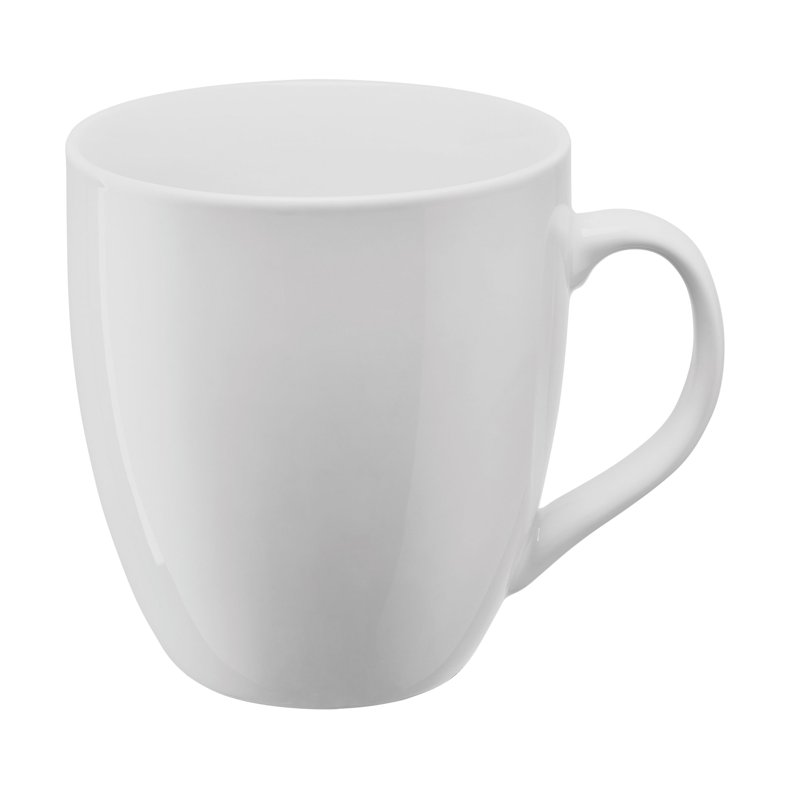 Mug SENATOR 380ml en grès blanc brillant, un design tout en rondeur pour ce mug avec une grande contenance, conditionnement par carton de 36 pièces. Fabriqué en Allemagne à partir d’électricité verte. Un marquage 1 couleur 1 position et frais techniques inclus.