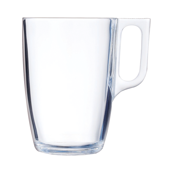 Mug de 40cl en verre trempé transparent. Le verre trempé permet un empilement sûr sans risque de casse, assurant une gestion facile même dans un environnements professionnels exigeants. Pas de vente en sans marquage et fabriqué en France. Un marquage 1 couleur 1 position et frais techniques inclus (impression réalisée en France).