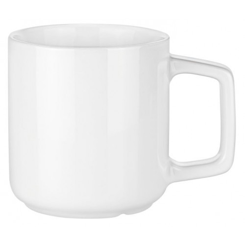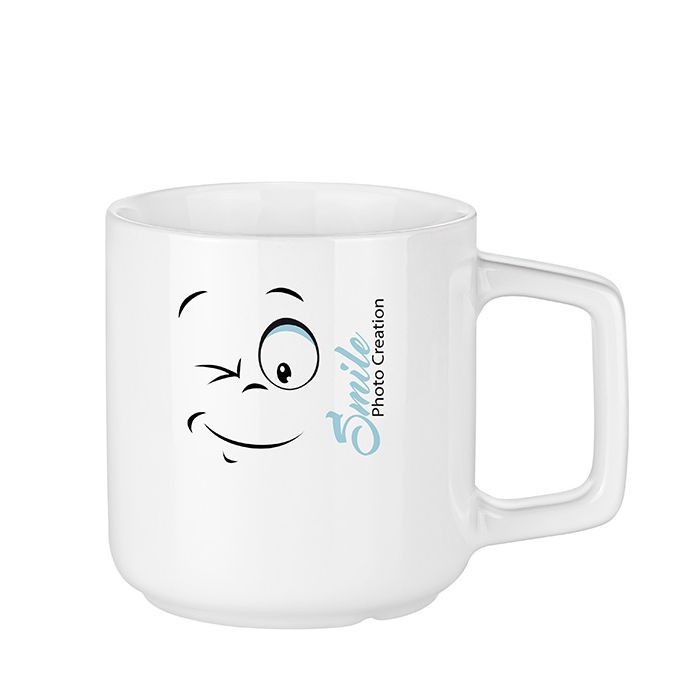 Mug blanc en porcelaine de 0,25l, avec ingénieux système d’écoulement de l’eau lors du lavage au lave-vaisselle, colisage de 36 pièces, compatible avec les machines à dosette. Fabriqué en Allemagne à partir d’électricité verte. Un marquage 1 couleur 1 position et frais techniques inclus.