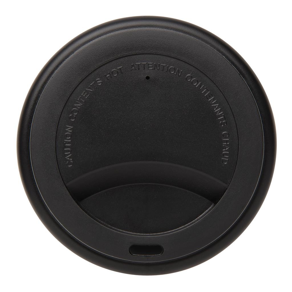 Mug 350ml à double paroi en PP recyclable et couvercle à vis. Convient pour les boissons froides et les boissons chaudes jusqu’à 100 degrés. Lavable à la main uniquement. Fabriqué en Chine.