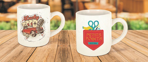Mug blanc en grès spécial machine à café, compatible vec les machines à café à dosettes. Passe au lave-vaiselle et au micro-ondes, livré sous boite carton individuelle. Un marquage sublimation et frais techniques inclus.