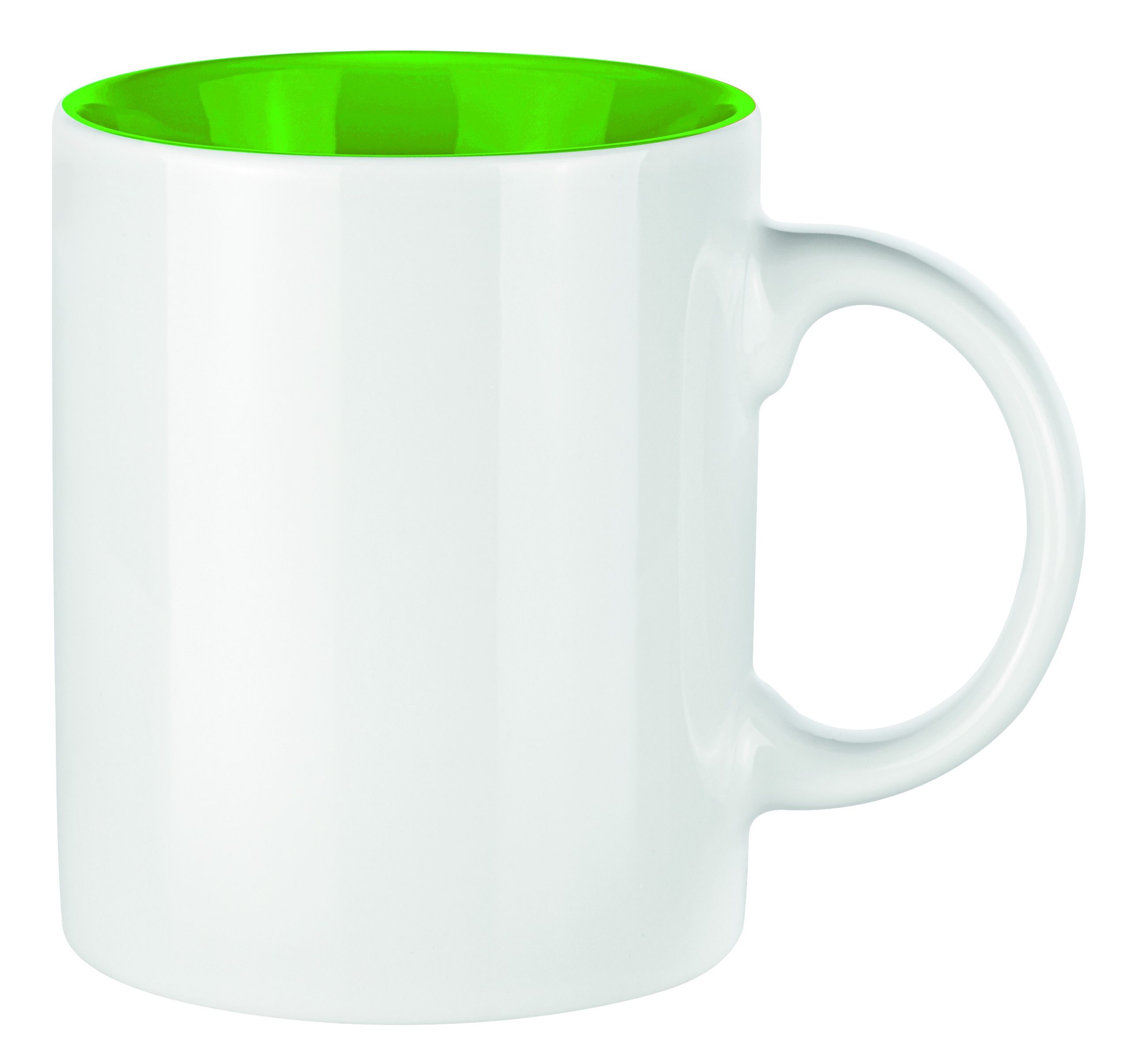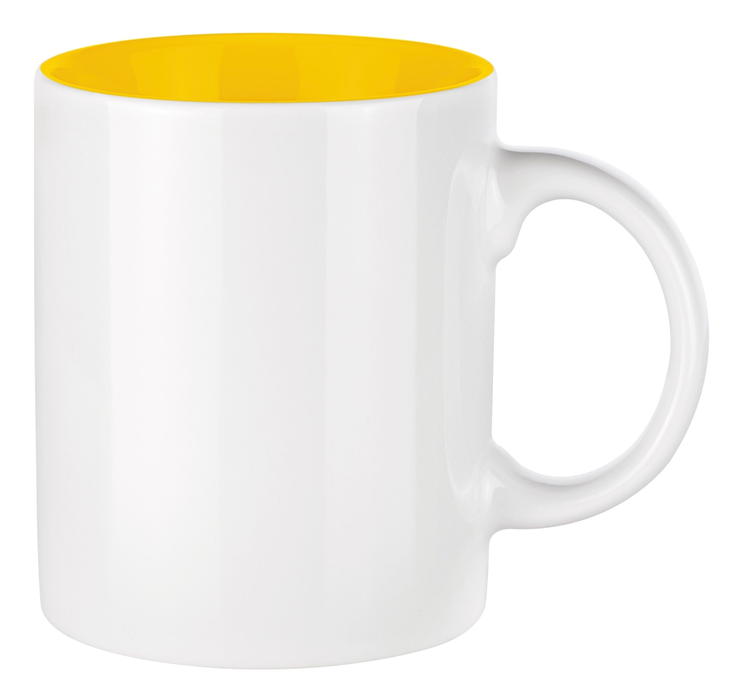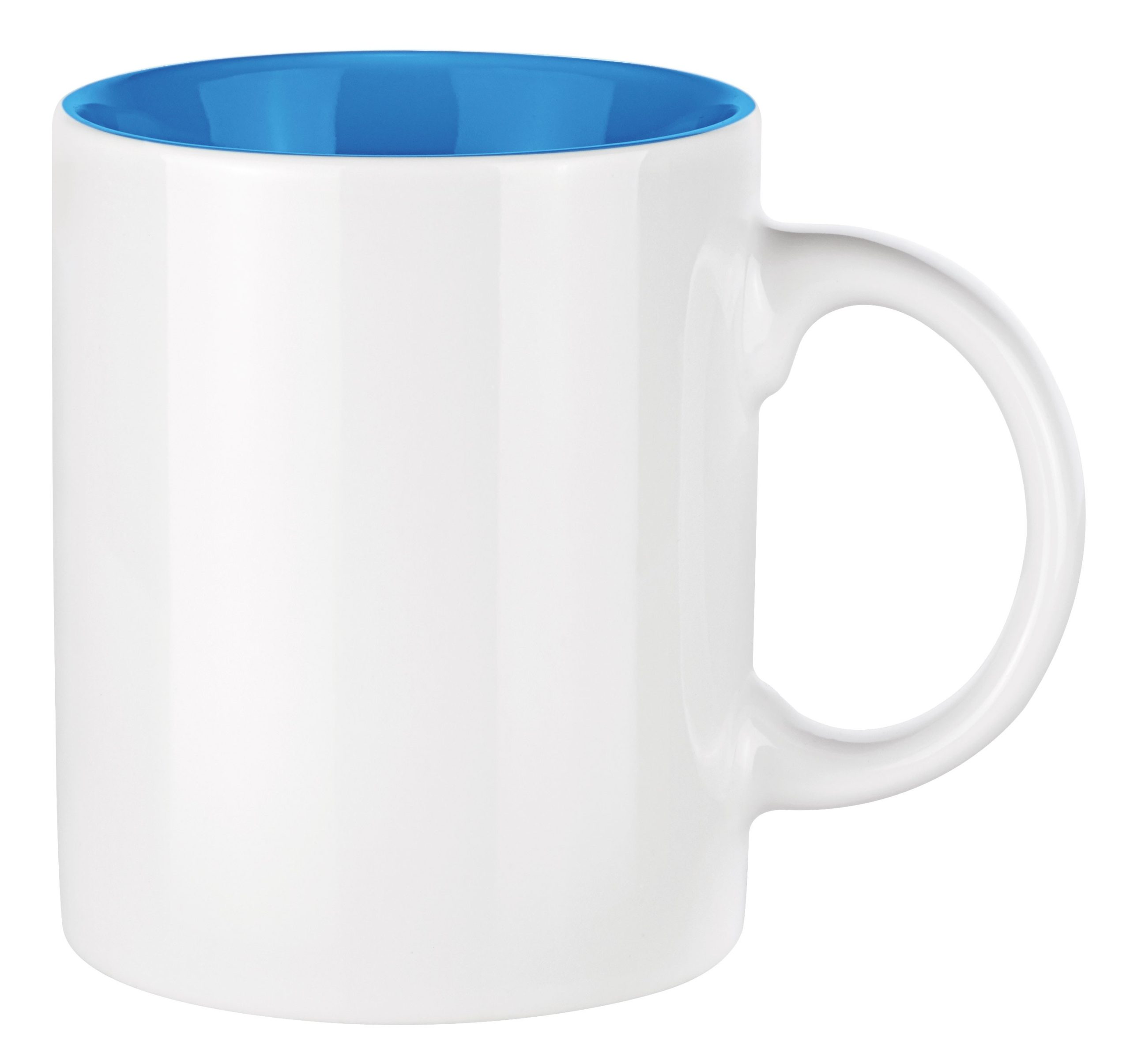 Mug 300ml bicolore, blanc et intérieur coloré. Avec ses 8 couleurs, vous n’aurez aucun mal à assortir votre mug et votre marque, livré par carton de 36 pièces. Un marquage 1 couleur 1 position et frais techniques inclus.