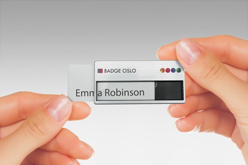 Badges nominatifs réutilisables pour tous vos événements. De forme standard, ce badge vous permet de changer facilement le nom des participants. Vous pouvez insérer votre nom sur une carte (65 x 28 mm) dans le badge. La fenêtre de 64 x 14 mm permet de visualiser la carte. Le badge Oliver est doté d’une fermeture magnétique et peut être personnalisé par gravure et impression en couleur. Fabriqué en Chine. Un marquage toutes couleurs 1 position et frais techniques inclus.