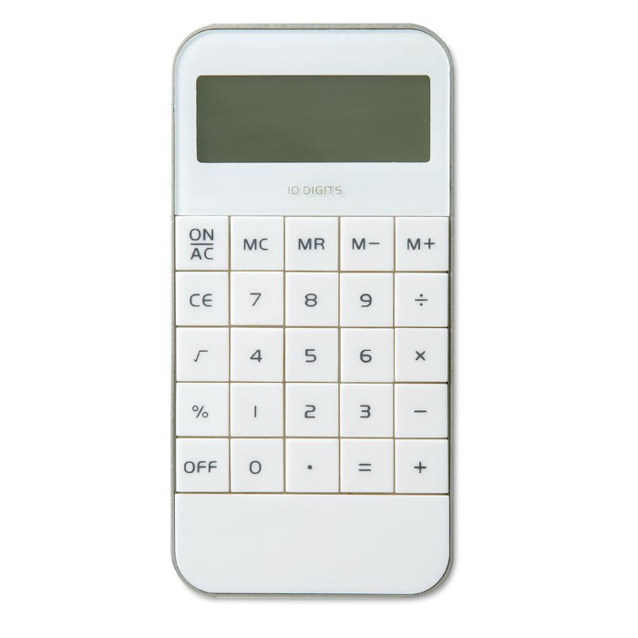 Calculatrice 10 chiffres en ABS. 1 pile AG13 incluse et fabriqué en Chine.