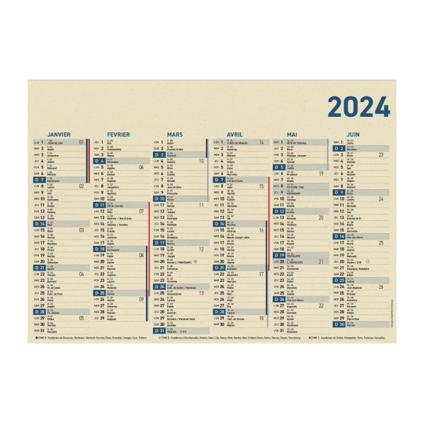 Calendrier bancaire souple naturel 6 mois/face. Carton 100% fibres de canne à sucre 263 gr./m². Un marquage copie laser recto/verso inclus (hors frais techniques).