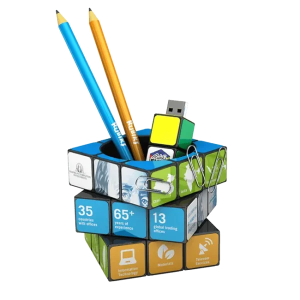 Avec ses blocs torsadables, le Rubik’s Pen Pot fera une déclaration de bureau forte pour votre organisation sur la créativité, l’intelligence et la capacité à relever un défi avec succès. Plastique ABS noir + étiquette yupo. Entièrement personnalisable sur les 6 côtés et équipé de 2 rangées d’aimants pour ranger vos trombones. Nos cubes sont fabriqués avec 100 % de plastique recyclé post-consommation. Nos cubes peuvent être imprimés avec de l’encre végétale, ce qui réduit l’utilisation de produits chimiques. Nos cubes sont fabriqués avec 100 % de plastique recyclé post-consommation. Nos cubes peuvent être imprimés avec de l’encre végétale, ce qui réduit l’utilisation de produits chimiques. Une personnalisation sur toutes les faces en quadri inclus.