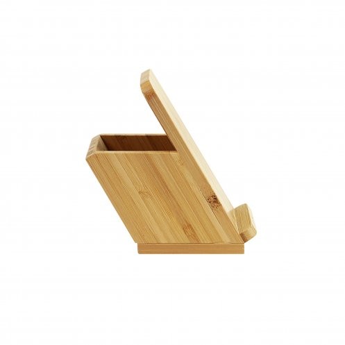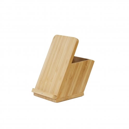 Pot à crayons en bambou avec fonction chargeur par induction 5W, Input : DC5V/1A et Output : 5V/1A et livré sous boite carton. Fabriqué en Chine.