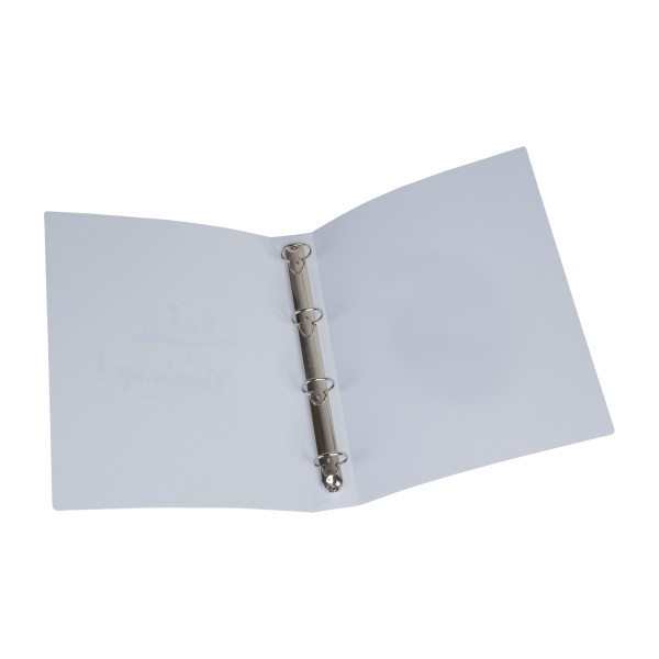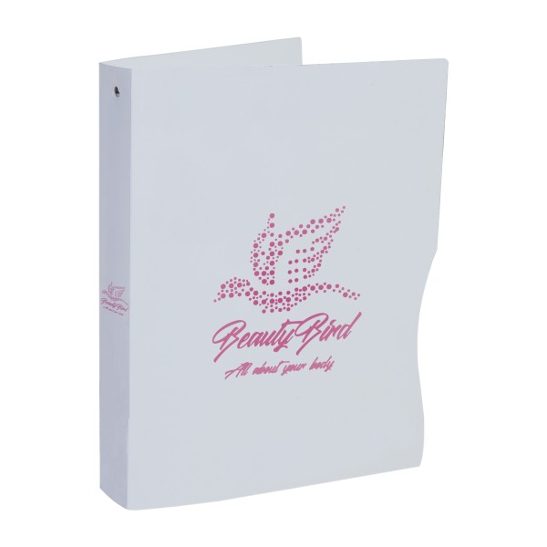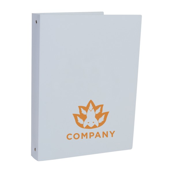 Classeur sur-mesure avec 4 anneaux de diamère 3 cm en polypropylène ép. 0,8 mm. Un marquage 1 couleur sur recto et tranche inclus (hors frais techniques).