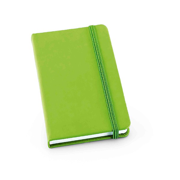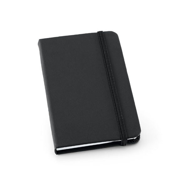 Bloc-notes A5 avec couverture rigide en PU, 160 pages unies (70 g/m²) 100 % recyclées, ruban marque-page et élastique. Fabriqué en Chine.