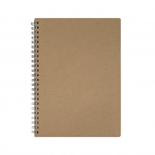 Cahier à spirales A5 avec couverture en carton recyclé 325gr/m², coins arrondis. 80 feuilles en papier recyclé 80gr/m², sans impression; coins droits et spirale métal grand côté argent.