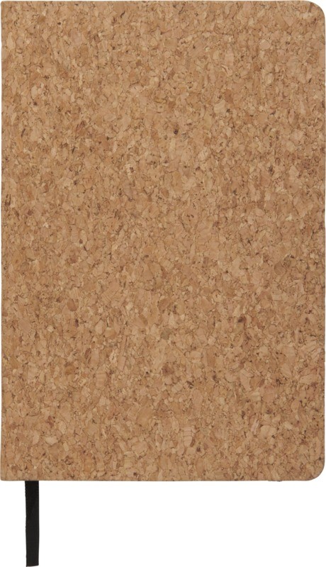 Carnet de notes de taille A5 avec couverture en liège, élastique et ruban noirs. Avec 80 feuilles de papier ligné de 70g/m². Liège. Fabriqué en Chine.