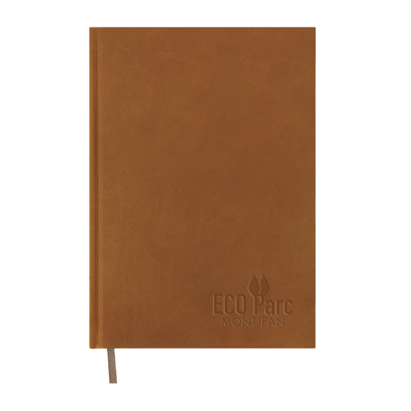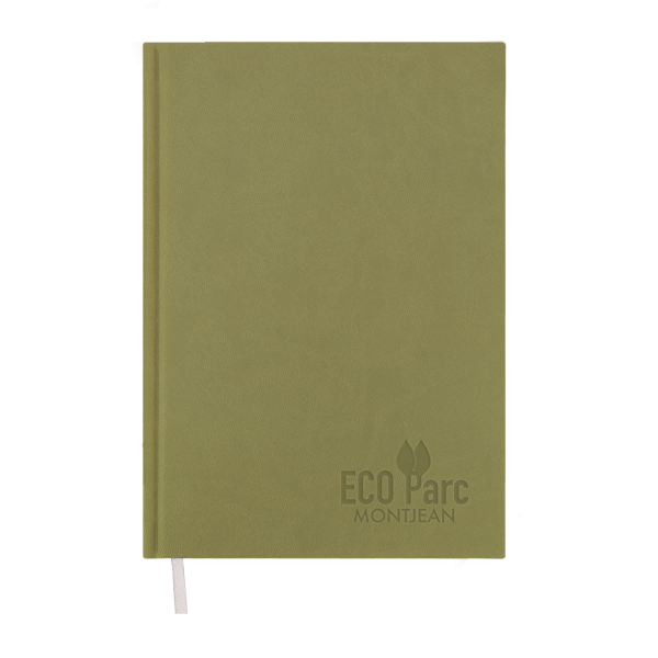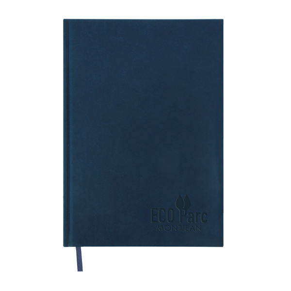 Carnet de notes de 128 pages lignées noir avec couverture en PVC Vivella. Papier offset blanc 80 gr. Dos carré collé, marque-page ruban. Inscription « Fabriqué en France » sur la première page de garde.