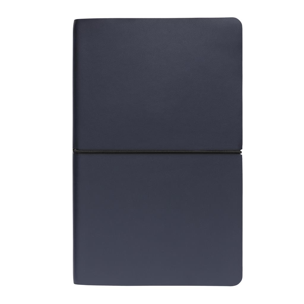 Carnet de note A5 avec couverture en soft PU avec 96 feuilles/ 192 pages de 80 g/m² ( papier crème) et lignées. Fermeture horizontale, élastique noir. Idéal pour une utilisation nomade.
