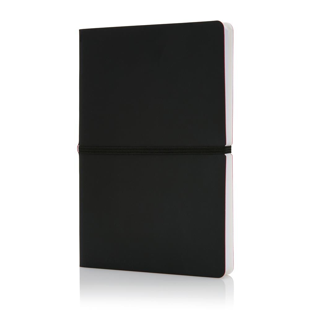 Carnet de notes A5 avec couverture en Soft PU, 192 pages de 80g/m² avec lignes noires. Fabriqué en Chine.