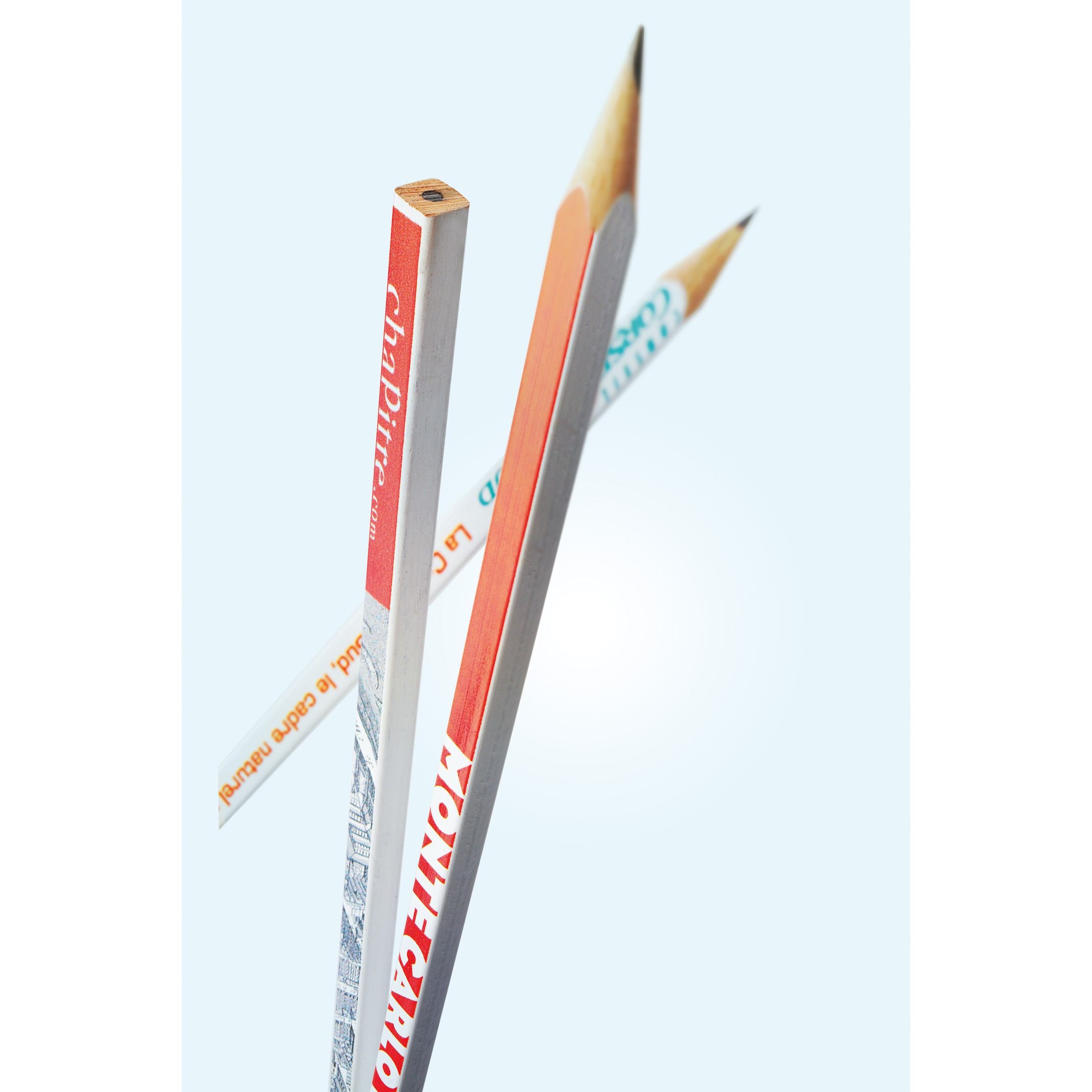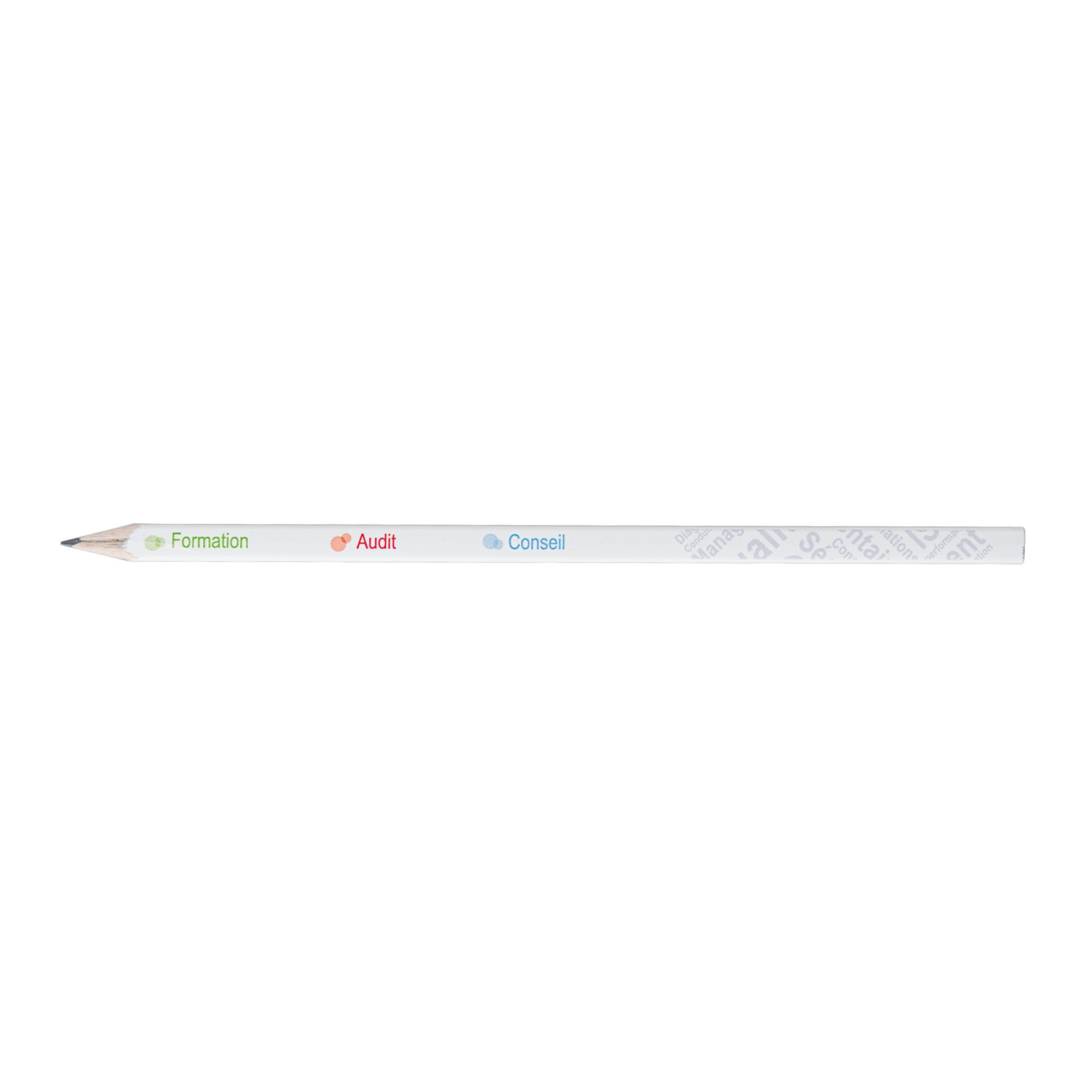 Crayon à papier carré avec tête coupée. Un marquage quadri inclus sur pantone blanc uniquement et frais techniques inclus