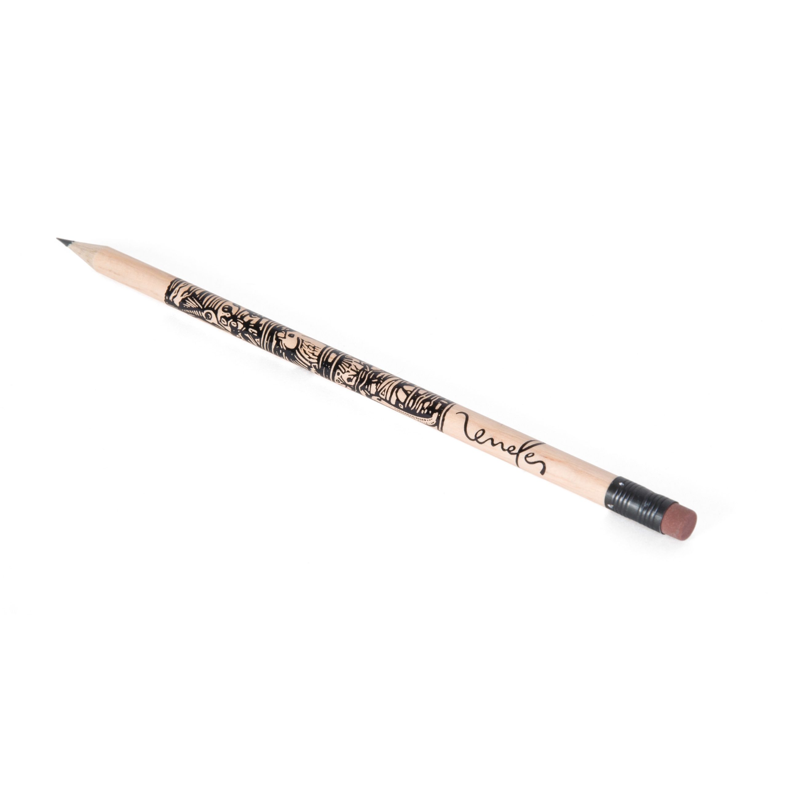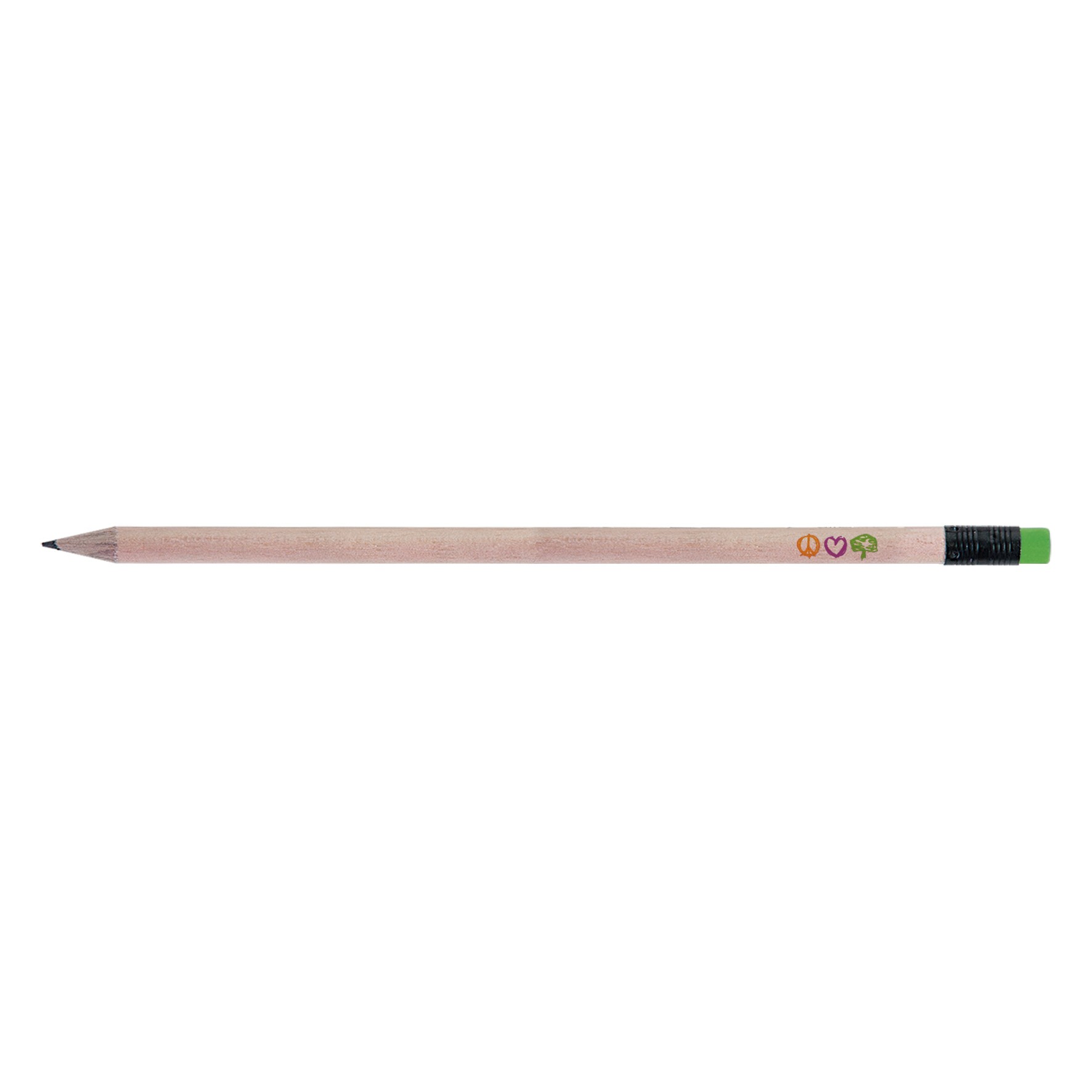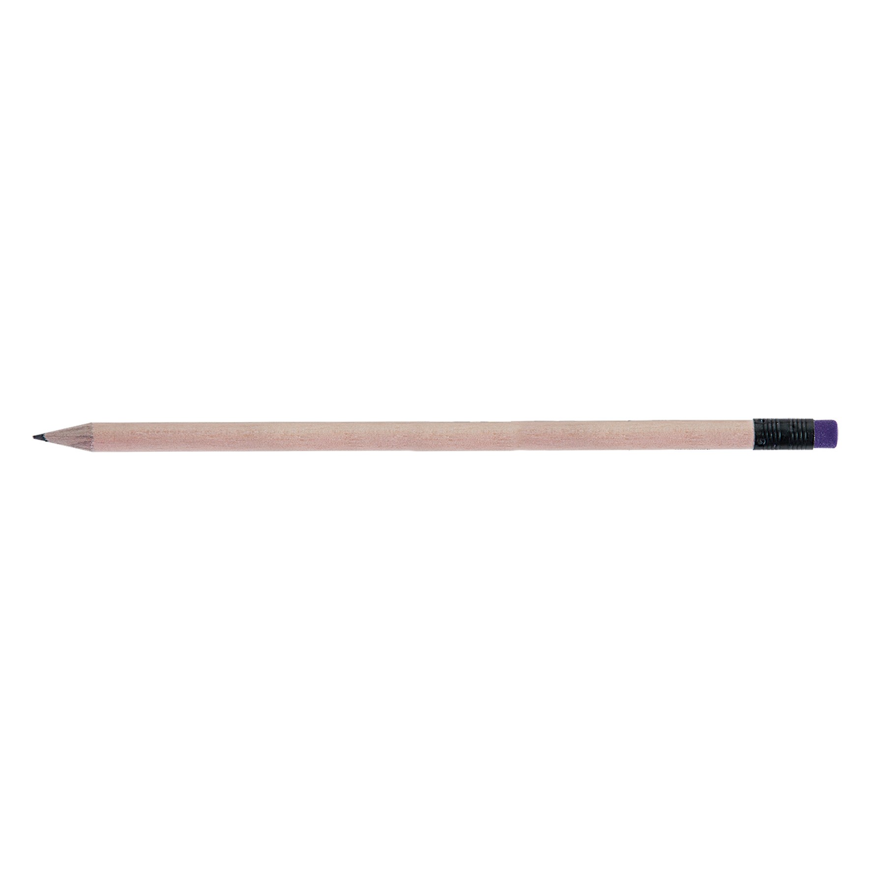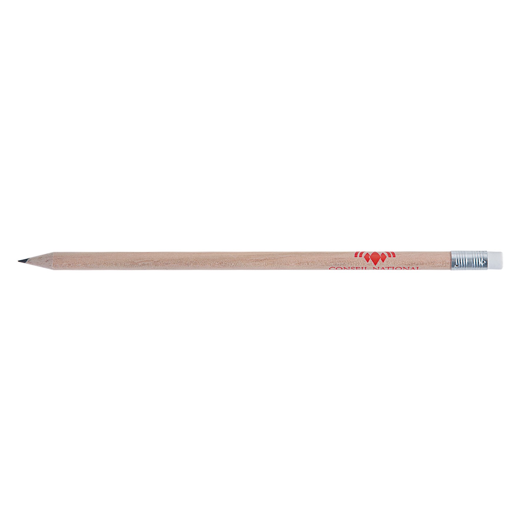 Crayon en bois du Pelay avec tête gomme et vernis incolore, choix de coloris de la gomme et de la virole. Un marquage 1 couleur à chaud 360° et frais techniques inclus.