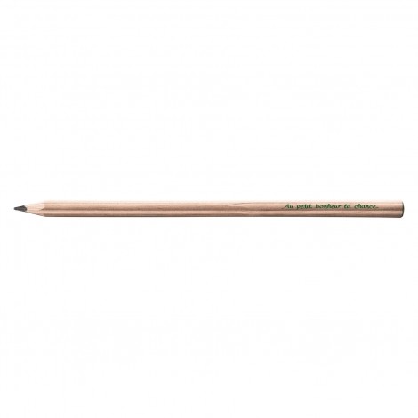 Crayon prestige naturel sans vernis en forme de trèfle à 4 feuilles avec mine graphite ou vert clair, fabriqué en France. Un marquage 1 couleur 1 position et frais techniques inclus.