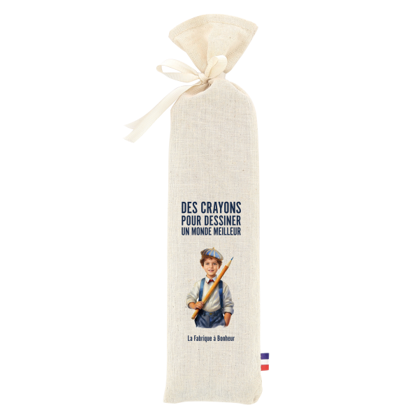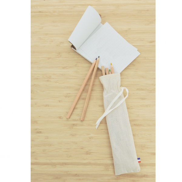 Etui coton 150 gr avec 12 crayons de couleurs en bois de Pulay.