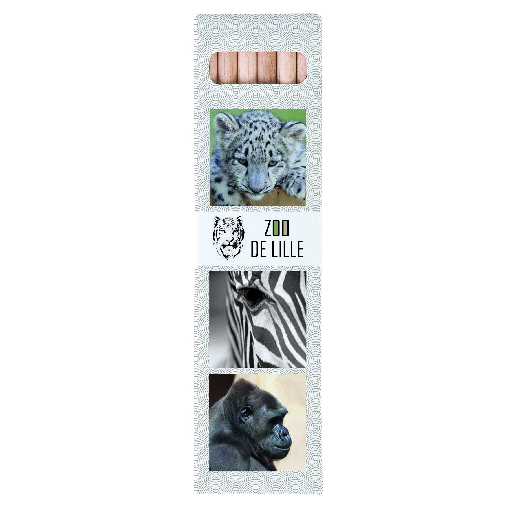 Étui de 6 crayons ECO, tête coupée, sans vernis dans étui carton. Fabriqué en France. Un marquage quadri totale sur l’étui et frais techniques inclus.