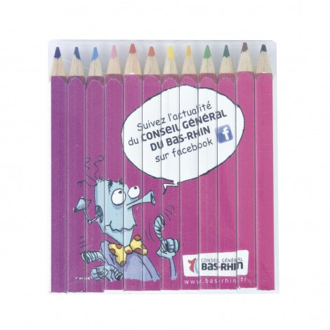 Set de 12 crayons avec un marquage quadri 1 face et frais techniques inclus (possibilité de recto/verso sur demande).