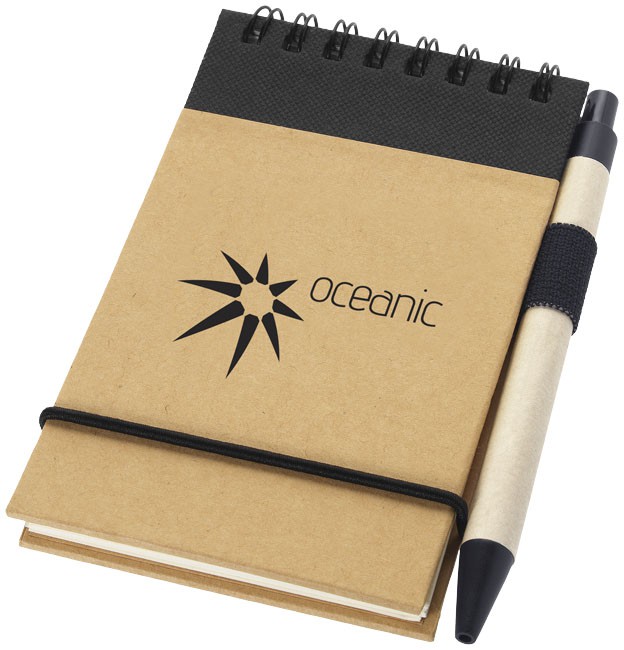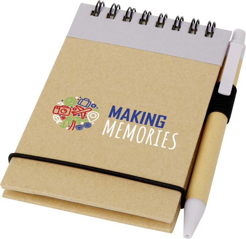 Il est facile de noter des idées rapides grâce au bloc-notes recyclé Zuse et au stylo de couleur assortie. Le petit bloc-notes contient 40 feuilles lignées de papier recyclé de référence A7, ce qui lui permet de se glisser dans n’importe quel sac, petit ou grand, d’être facile à tenir et surtout d’être un choix durable. Différentes options d’impression sont disponibles pour afficher n’importe quel logo sur l’extérieur de la couverture rigide. Fabriqué en Chine.