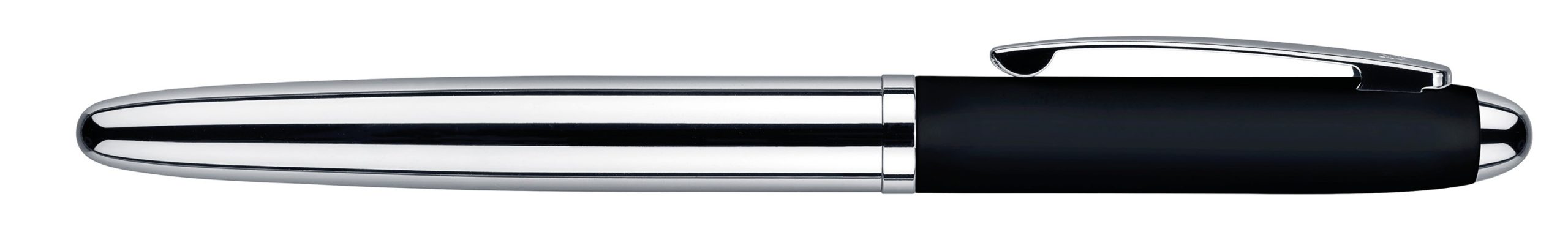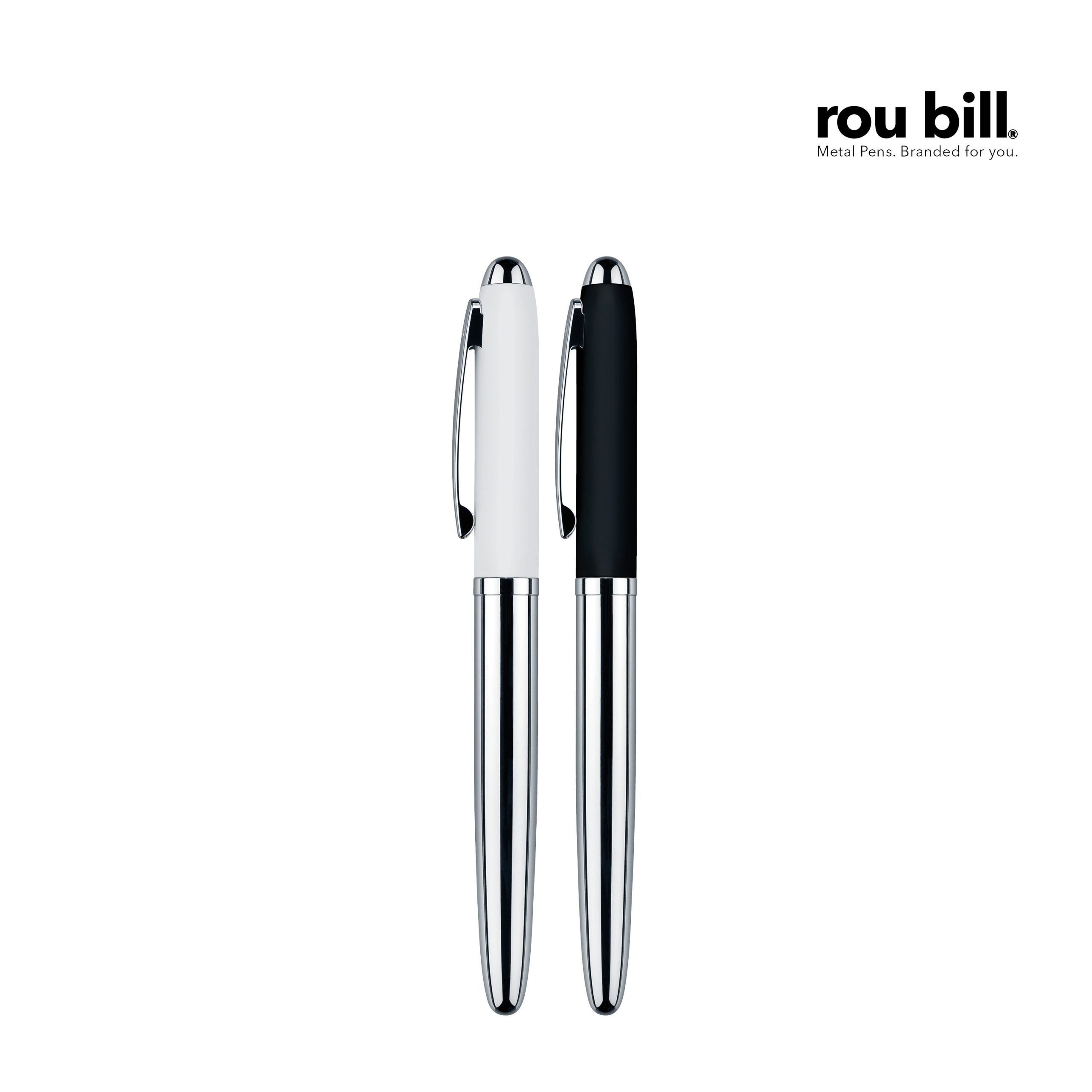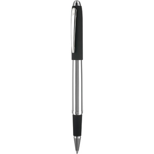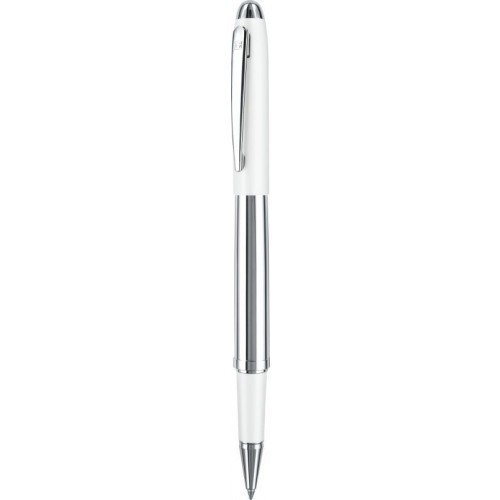 Rollerball avec corps et attributs en métal chromé brillant, corps et zone de préhension en métal laqué, toucher souple. Recharge sécurité en métal pour roller avec couleur d’encre bleue. Fabriqué en Chine. Un marquage 1 couleur 1 position et frais techniques inclus.