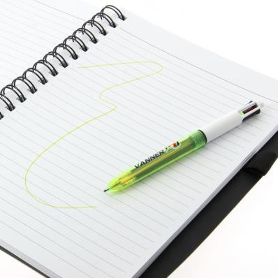 La famille emblématique BIC® 4 Couleurs s’enrichit d’une couleur fluo pour offrir encore plus de prestations ! Trois encres de couleurs standards (bleu, noir et rouge), combinées avec un marqueur fin d’une couleur jaune brillante. Notre emblématique BIC® 4 Couleurs® devient plus durable, avec désormais 13 % de plastique en moins dans la partie supérieur. Les produits sont fabriqués et imprimés dans des usines européennes où 100% de l’électricité utilisée provient de sources renouvelables. Un marquage 1 couleur sur corps et frais techniques.