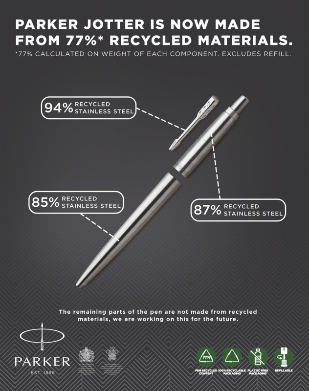 Jotter sait se faire remarquer. Avec son design authentique, il est la star de ces 60 dernières années. Ses couleurs attirantes et sa forme distinctive en font le modèle le plus populaire de la marque Parker, facilement identifiable par son fameux « clic ». Sous coffret cadeau Parker. Livré avec sa cartouche d’encre QuickFlow. Design exclusif. Métal. Fabriqué en France.