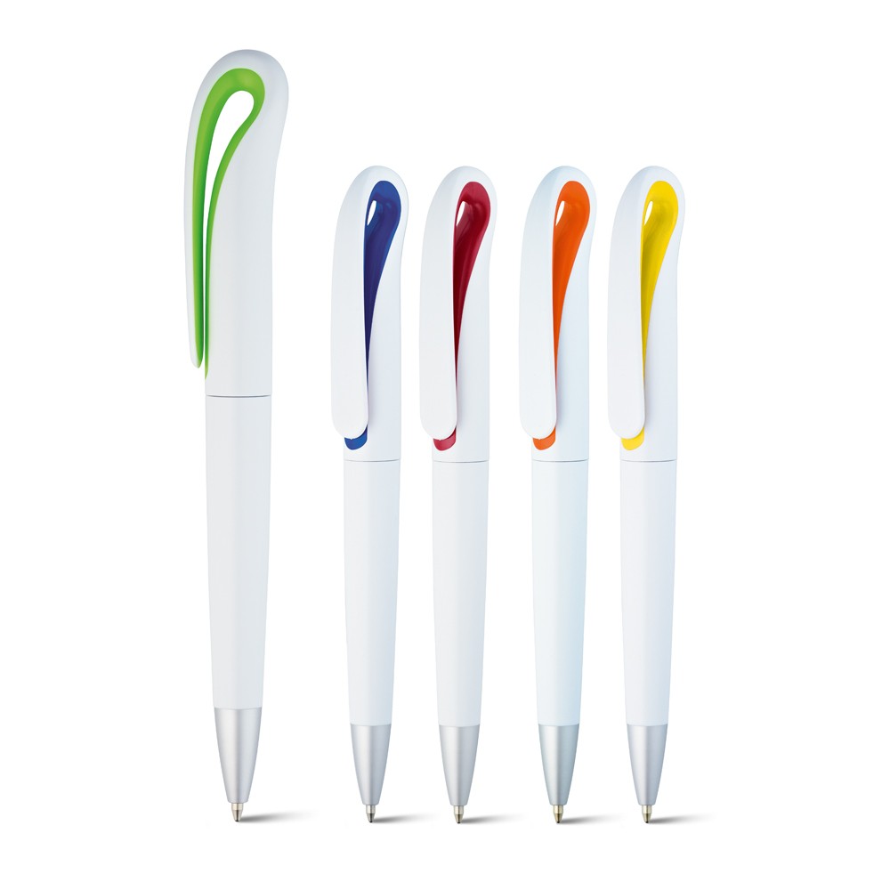 Stylo à bille avec mécanisme twist et clip. Fabriqué en Chine.