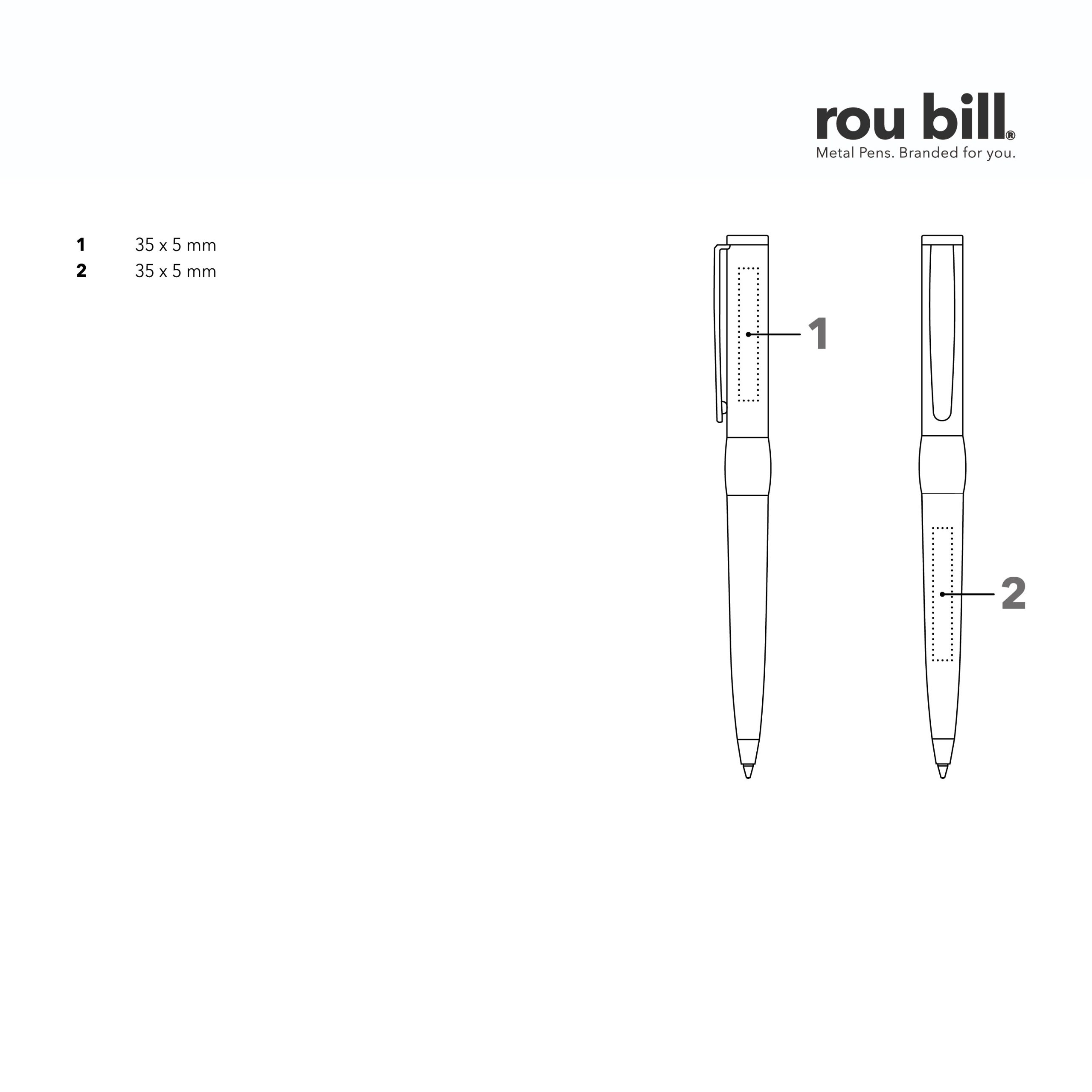Stylo à bille à mécanisme tournant avec corps en métal laqué brillant et attributs en métal chromé brillant, recharge métal G2 avec longueur d’écriture jusqu’à 8 500 m et encre bleue. Fabriqué en Chine. Un marquage 1 couleur 1 position et frais techniques inclus.