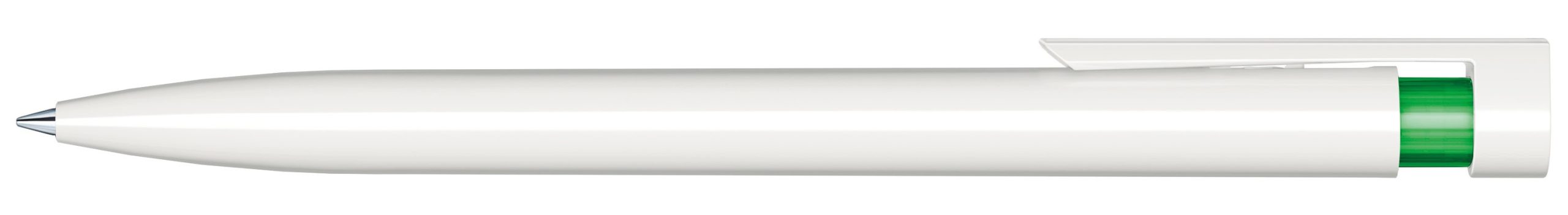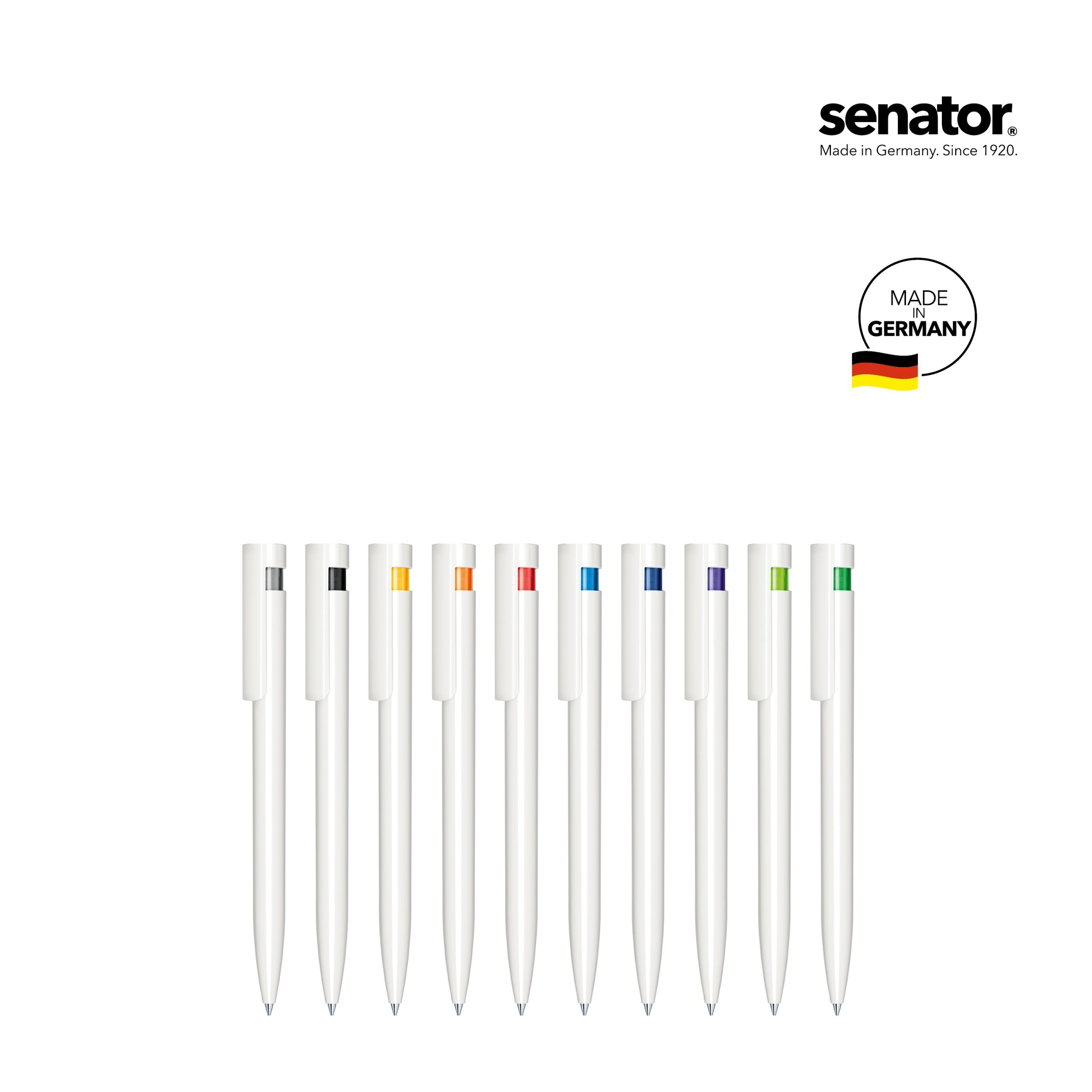 Stylo à bille rétractable, surface du corps opaque brillante, corps et clip blancs, partie supérieure transparente de couleur, recharge Magic Flow G2 avec longueur d’écriture jusqu’à 5 000 m et encre bleue ou noire, fabriqués en Allemagne. Un marquage 1 couleur 1 position et frais techniques.