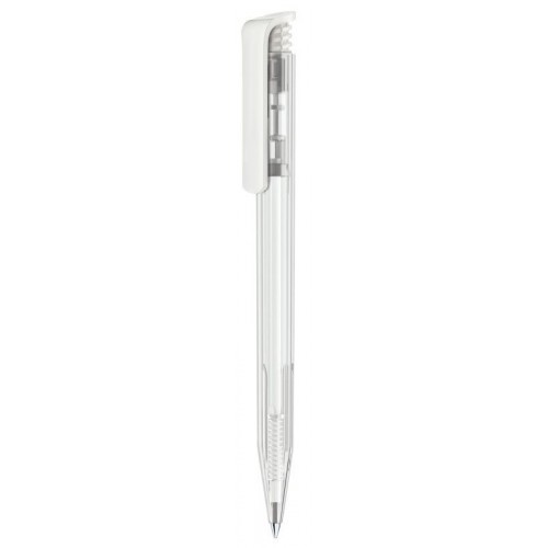 Stylo à bille rétractable, surface du corps transparente brillante, clip opaque brillant, recharge Magic Flow *20 avec longueur d’écriture jusqu’à 2 000 m et encre bleue ou noire, fabriqué en Allemagne. Un marquage 1 couleur 1 position et frais techniques inclus.