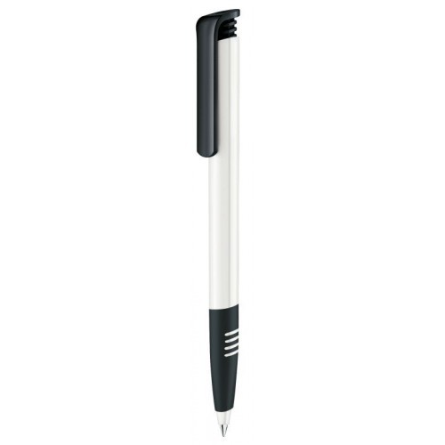 Stylo à bille rétractable, surface du corps opaque brillante, corps blanc, clip de couleur et zone de préhension assortie, recharge Magic Flow *20 avec longueur d’écriture jusqu’à 2 000 m et encre bleue ou noire, fabriqués en Alllemagne. Un marquage 1 couleur 1 position et frais techniques inclus.