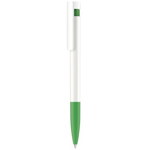 Stylo à bille rétractable avec surface du corps opaque brillante, corps blanc, clip et zone de préhension souple assortis. Recharge Magic Flow G2 avec longueur d’écriture jusqu’à 5 000 m et encre bleue ou noire, fabriqués en Allemagne. Un marquage 1 couleur 1 position et frais techniques inclus.