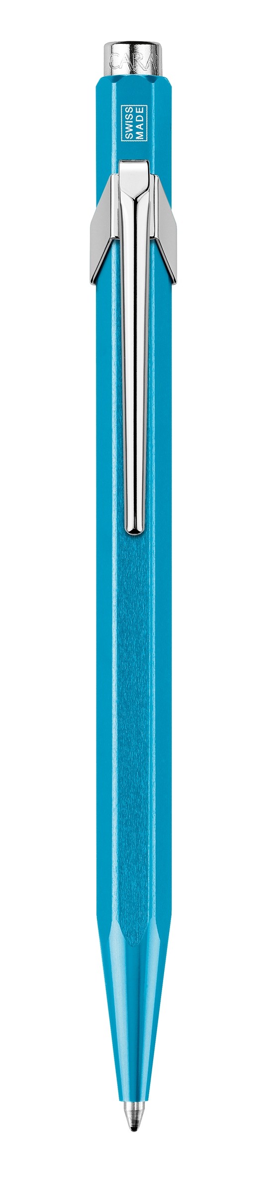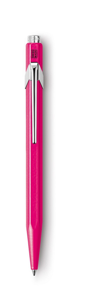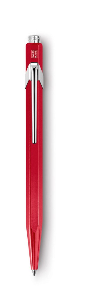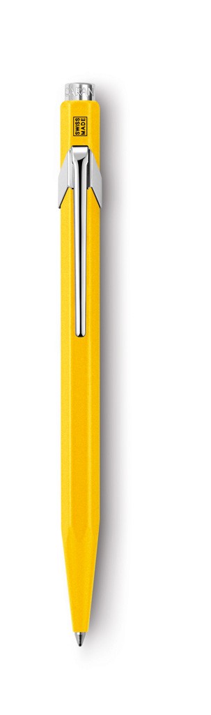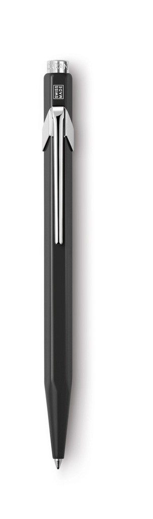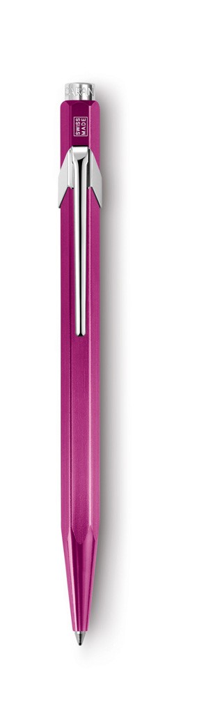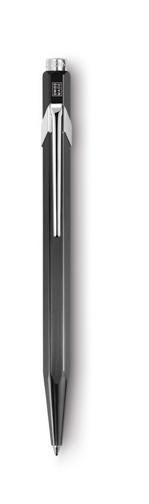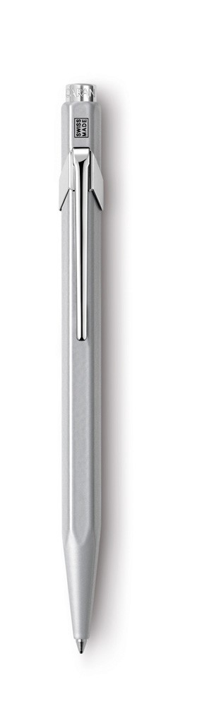 Stylo bille bouton poussoir rechargeable : cartouche Goliath bleu medium, longueur d’écriture de 600 pages A4 (noir, rouge, vert sur demande), corps hexagonal en aluminium et clip flexible en acier trempé. Mécanisme à pression extrement résistant, application des couleurs par laquage ou poudrage électrostatique, Fabrication Suisse.
