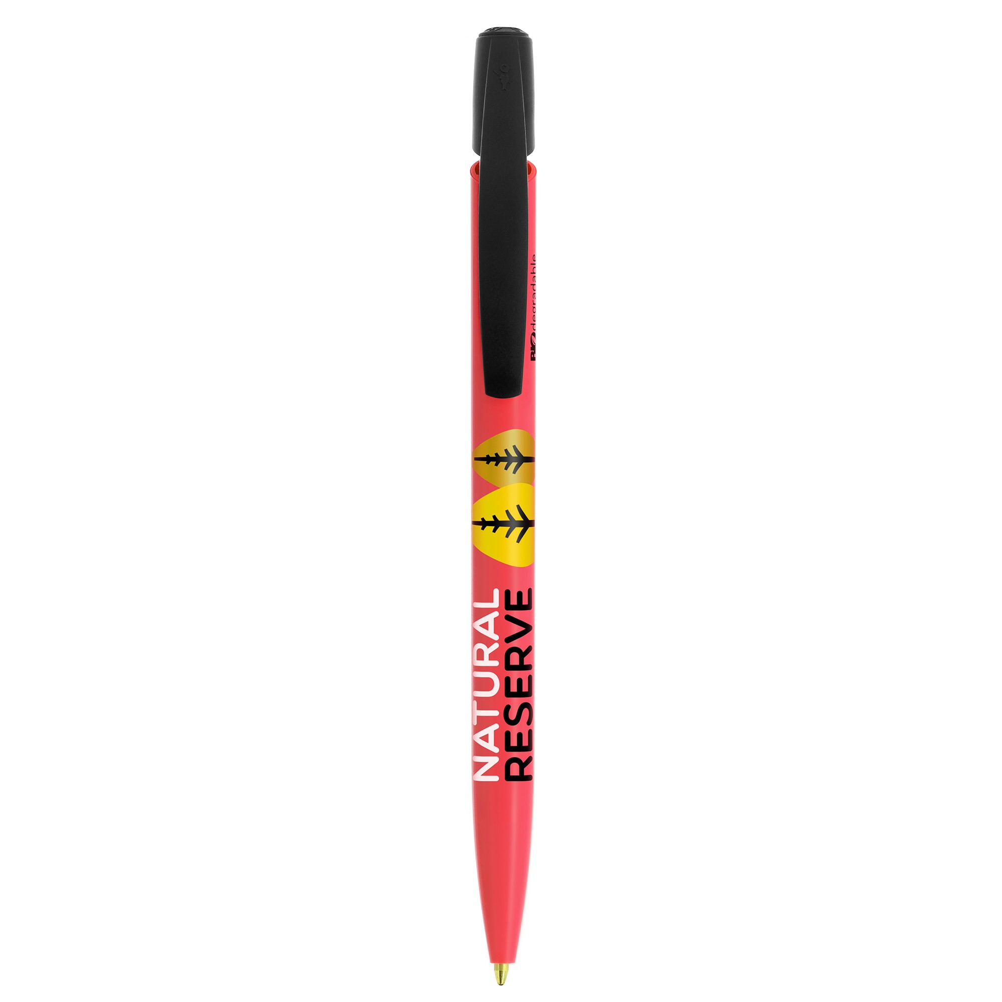 Et maintenant, notre BEST SELLER arrive sur le marché dans une nouvelle version BIO. Le corps est 100 % biodégradable et le clip 100 % recyclable. MATÉRIAUX BIOSOURCÉS: Le corps est fabriqué à partir de 70 % de matériaux biosourcés. Les colorants sont 100 % biosourcés, fabriqué en Espagne. L’usine BIC Graphic Europe s’alimente 100% d´électricité renouvelable. Ainsi les produits sont faits avec 100% d’électricité renouvelable. Un marquage 1 couleur 1 position et frais techniques.