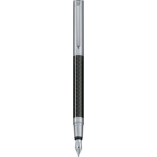 Stylo à plume SENATOR en métal combiné avec du plastique aspect carbone avec capuchon et attributs en métal chromé mat. Plume en acier à pointe iridium, M, cartouche d’encre standard de couleur d’encre bleue roi. Un marquage 1 couleur 1 position et frais techniques.