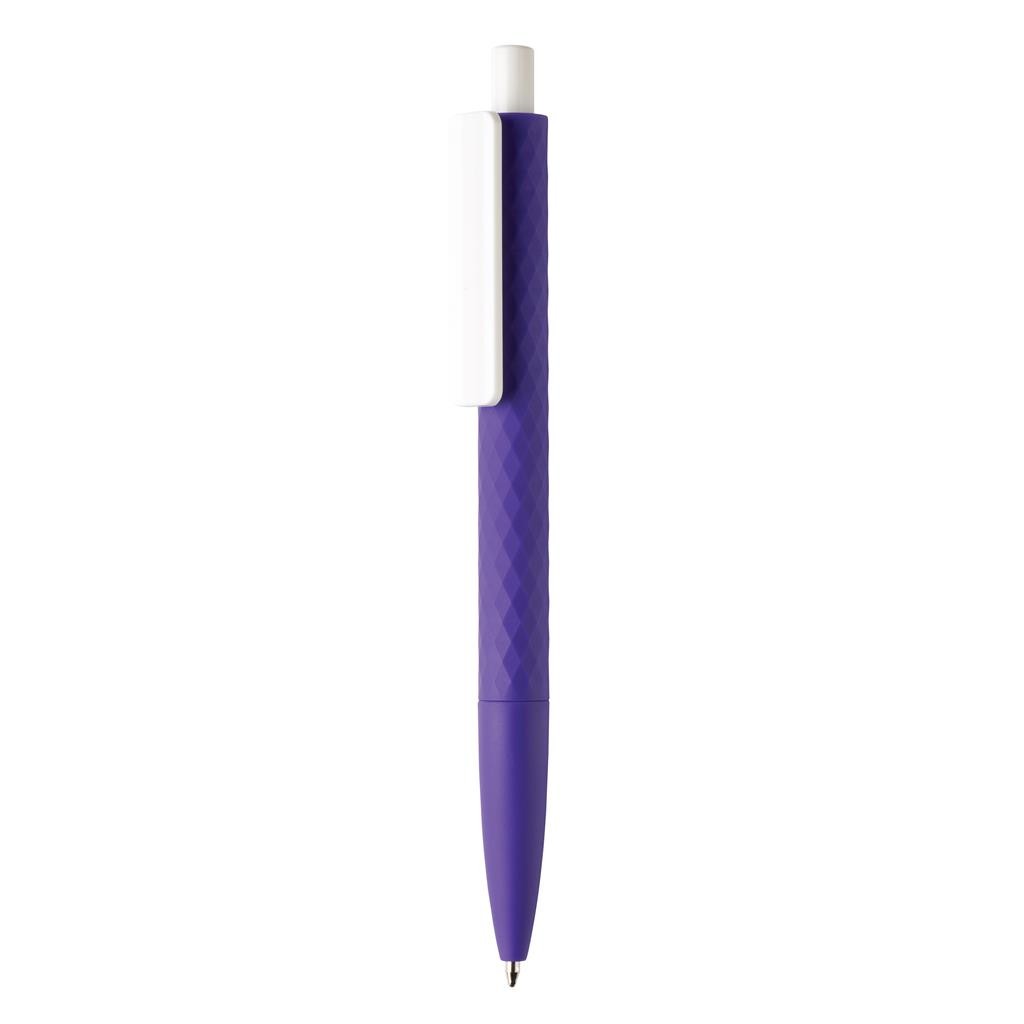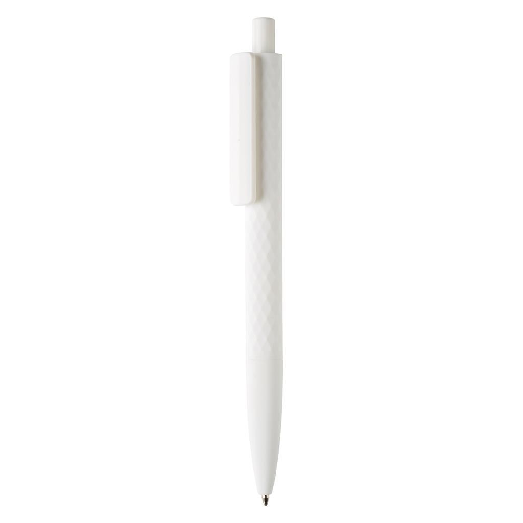 Stylo à bille rétractable en plastique avec finition losange texturé et attributs blanc. Nouvelle version avec finition gomme pour un confort d’écriture supplémentaire. Encre bleue Dokumental® de fabrication allemande pour +/- 1200m d’écriture et bille en carbure de tungstène assurant une écriture régulière. Fabriqué en Chine.