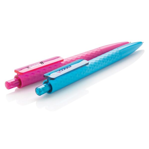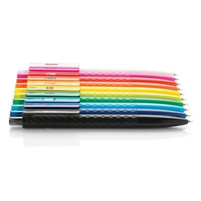 Stylo à bille rétractable en plastique avec finition losange texturé. Encre bleue Dokumental® de fabrication allemande pour +/- 1200m d’écriture et bille en carbure de tungstène assurant une écriture régulière. Fabriqué en Chine.