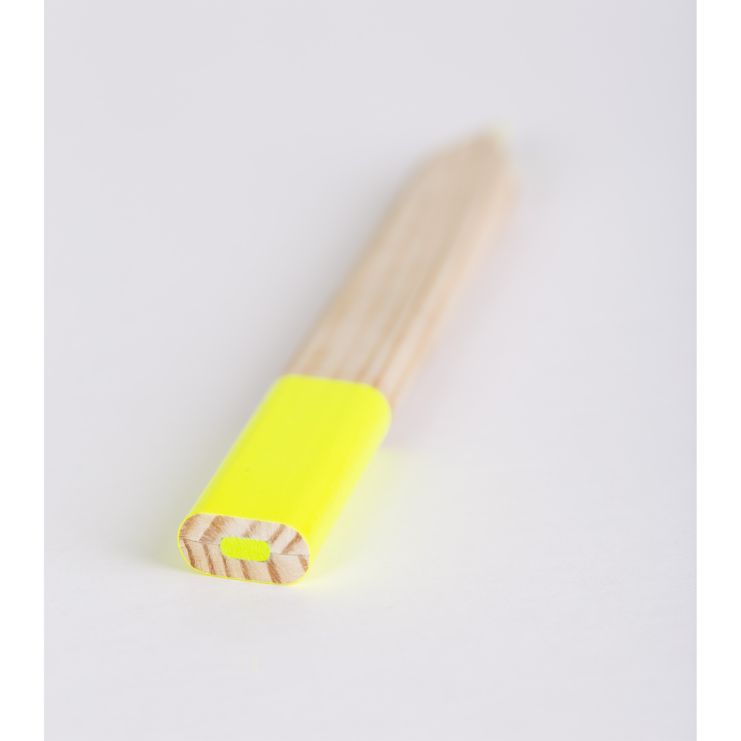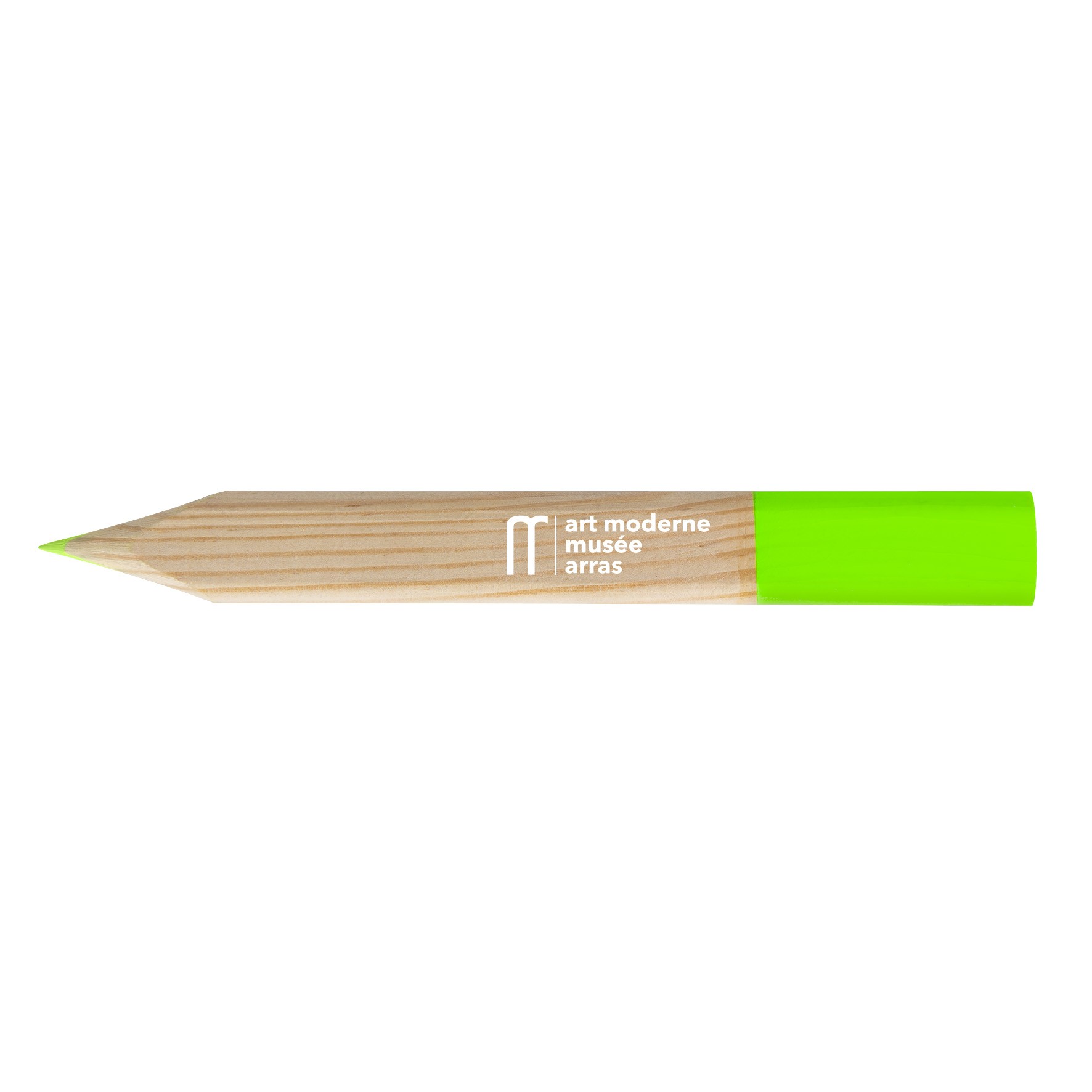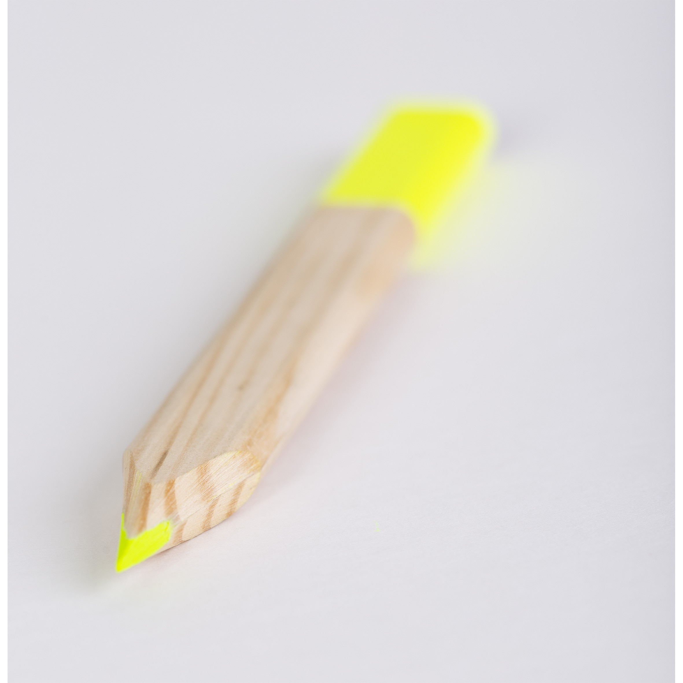 Crayon surligneur tête trempée fluo en pin sylvestre français sans vernis assortie à la couleur de la mine (vert clair, vert foncé, orange, rose). Forme innovante et design laissant apparaitre sa mine large à l’extrémité. Un marquage 1 couleur 1 position inclus (hors frais techniques – quadri ou gravure laser possible sur demande).
