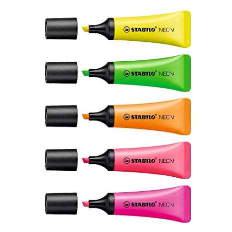 Set de 2 surligneur NEON dans un étui carton. Moderne en forme de tube dans un style minimaliste avec surface douce pour une tenue en main agréable et confortable. Look néon tendance, encre à base d’eau avec technologie anti-dessèchement pour un travail concentré, fabriqué en Allemagne.