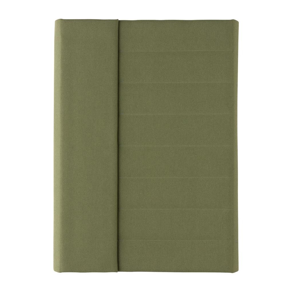 Carnet A5 en rPET Aware™. Le carnet contient 64 feuilles/128 feuilles de papier ligné 80gm/s de couleur crème. À l’intérieur, vous trouverez 1 grande pochette, 2 emplacements pour cartes et un passant stylo. Fermeture magnétique. Avec le traceur AWARE™ qui valide l’utilisation authentique de matériaux recyclés. Chaque portefeuille économise 3,9 litres d’eau et a réutilisé 6,5 bouteilles PET de 0,5L. 2 % des recettes de chaque produit Impact vendu seront reversés à Water.org. Sans PVC.